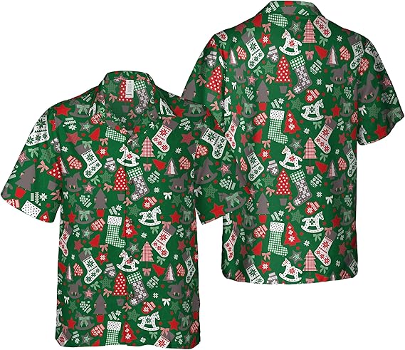 Celebrate the holiday season in tropical style with this Christmas Hawaiian Shirt for Men featuring a playful red and green Christmas socks pattern. This shirt perfectly blends festive cheer with relaxed island vibes, making it a standout choice for Christmas parties, family gatherings, or sunny getaways during the holidays.