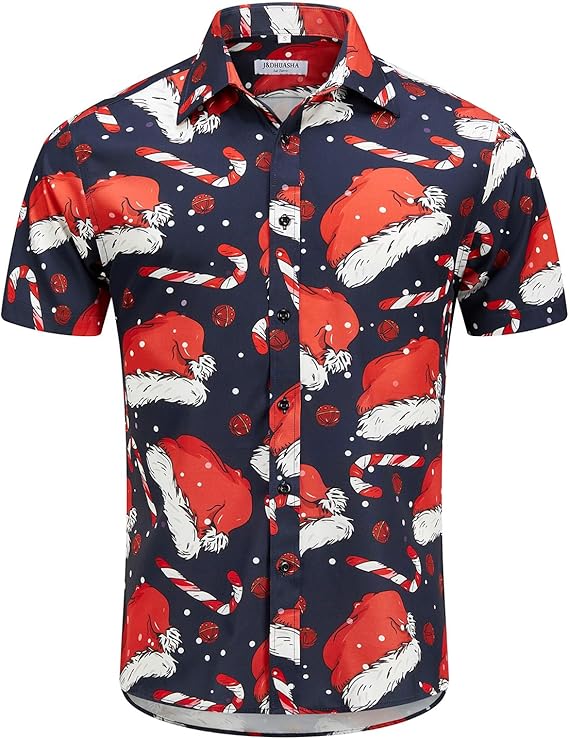 2025 Christmas Hawaiian Shirt for Men – Santa Hat Print Button Down Holiday Shirt
