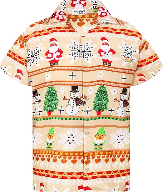 The shirt’s relaxed Hawaiian silhouette, button-down front, and short sleeves make it versatile and effortlessly stylish. It’s the perfect piece for anyone who wants to stay cool while looking festive and confident throughout the season.