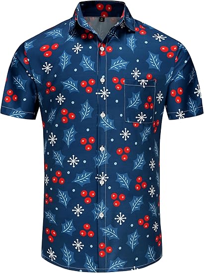 Featuring a minimalist print of Santa, reindeer, and holiday decorations, it offers festive charm without overwhelming patterns. Perfect for Christmas parties, family gatherings, or tropical vacations, this shirt keeps your look sleek, comfortable, and cheerful.