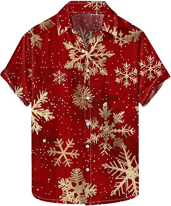 Featuring a cheerful print of snowflakes set against a tropical backdrop, it blends winter holiday motifs with sunny island vibes. Ideal for Christmas parties, tropical vacations, or casual festive gatherings, this shirt adds a stylish and playful touch to any occasion.