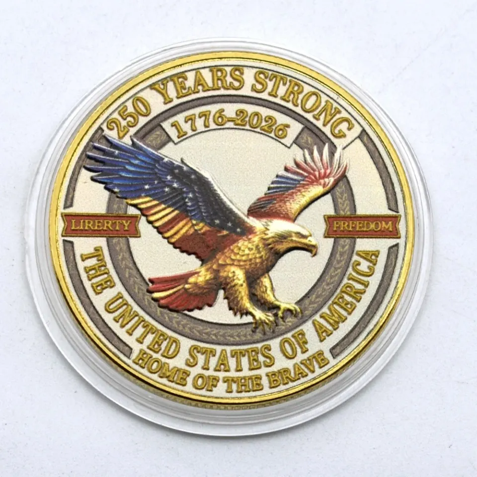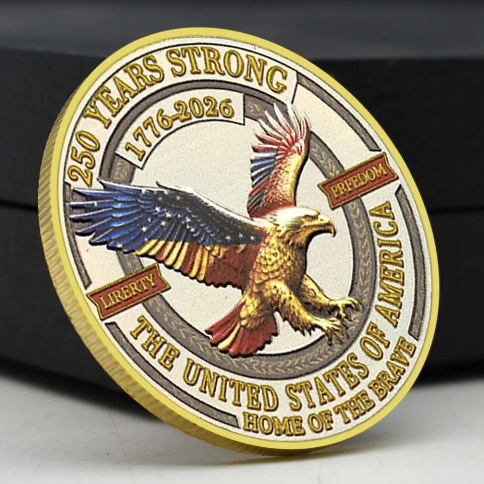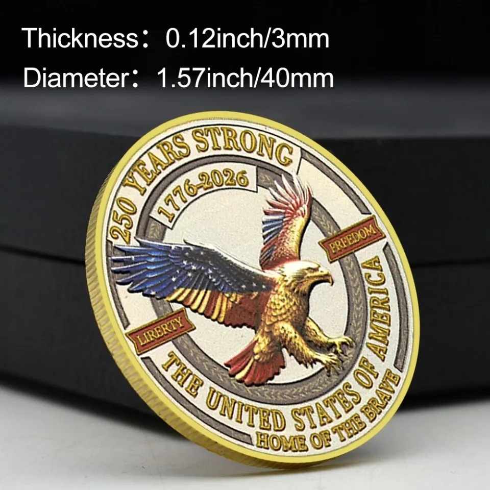 2026 USA 250th Anniversary Coin – Freedom Eagle Flags Golden Challenge Medal