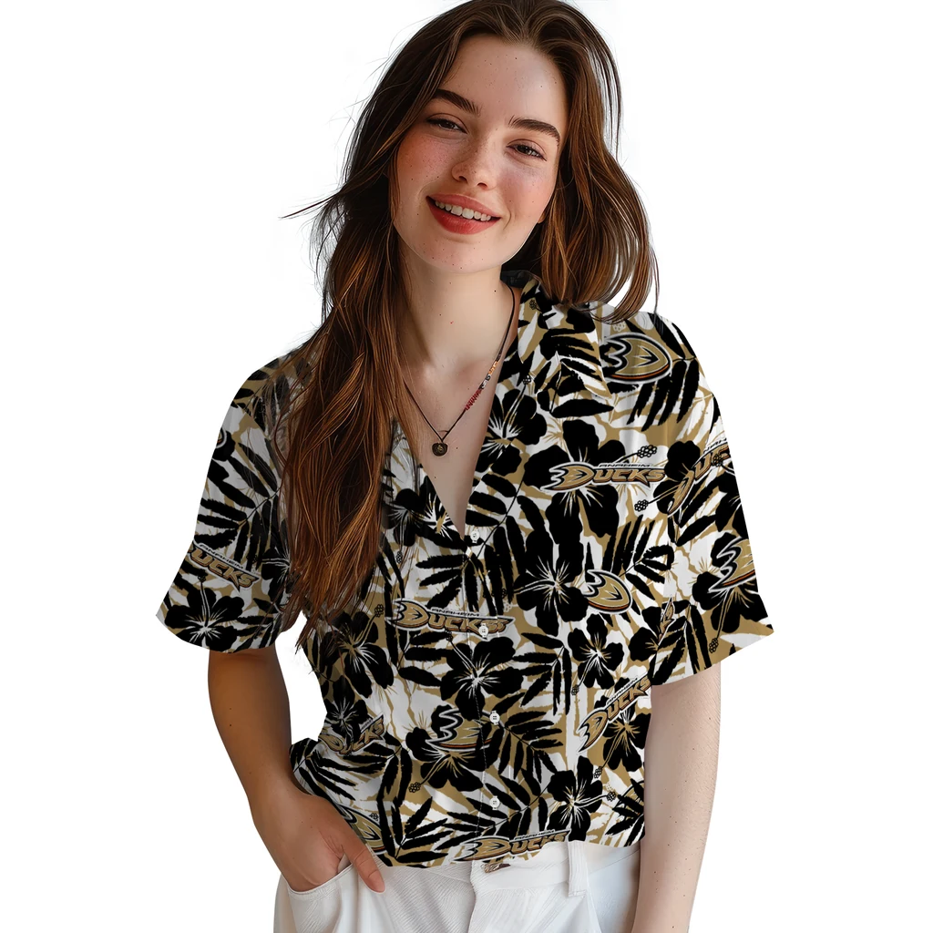 Anaheim Ducks Hawaiian Shirt - Hibiscus Overlay
