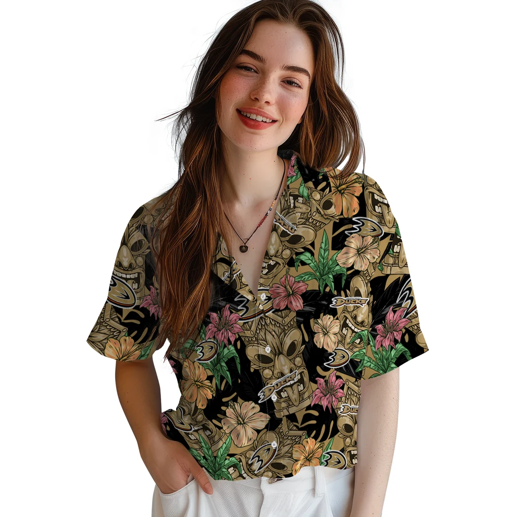 Anaheim Ducks Hawaiian Shirt - Hibiscus Tiki Jungle
