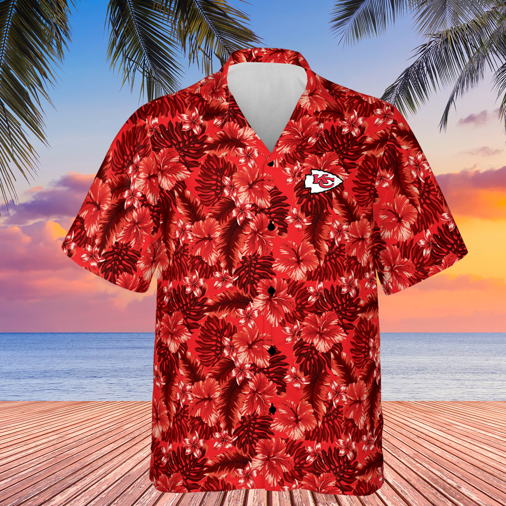 A standout mix of Kansas City Chiefs identity and tropical Hawaiian flair.
