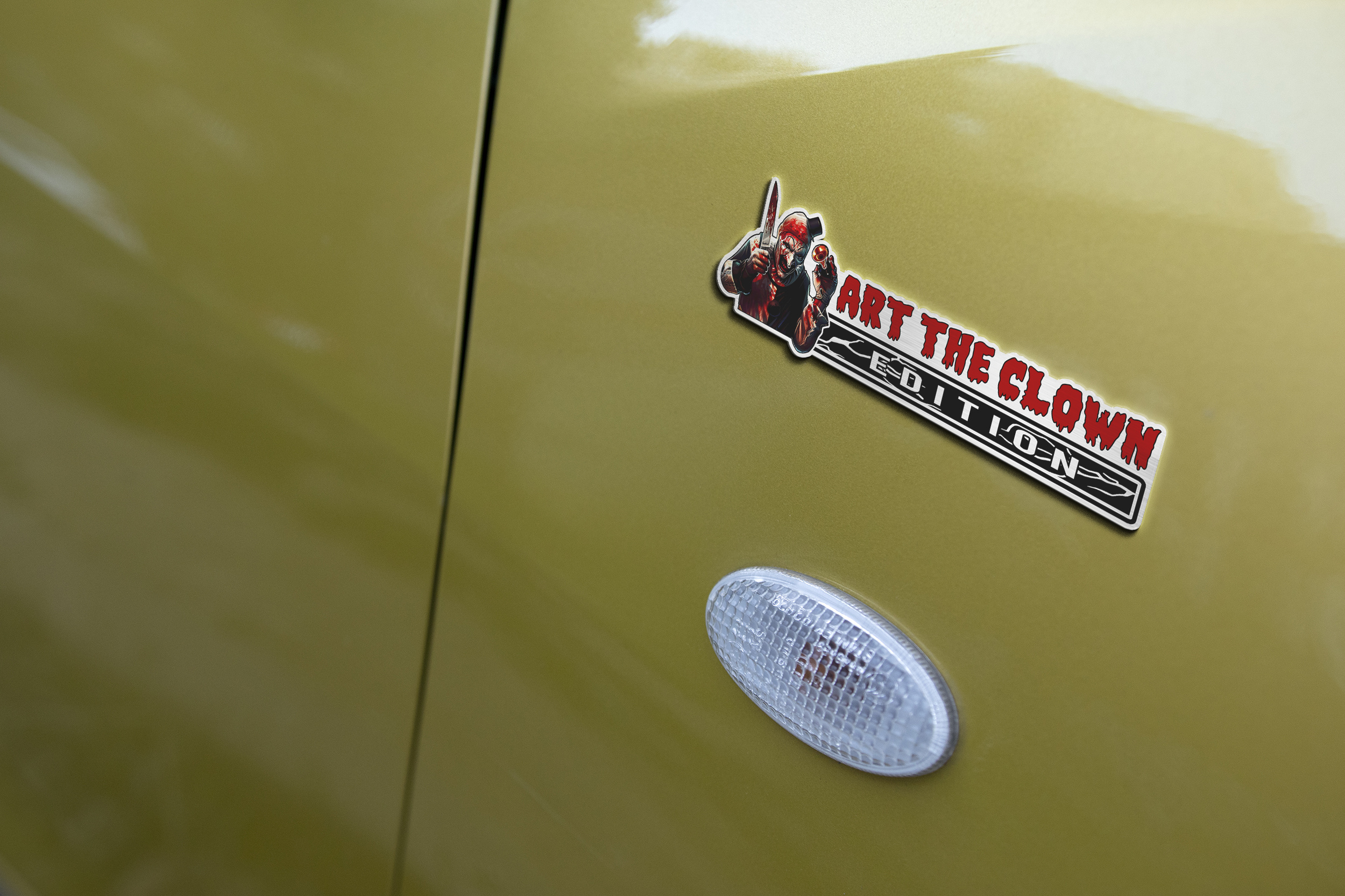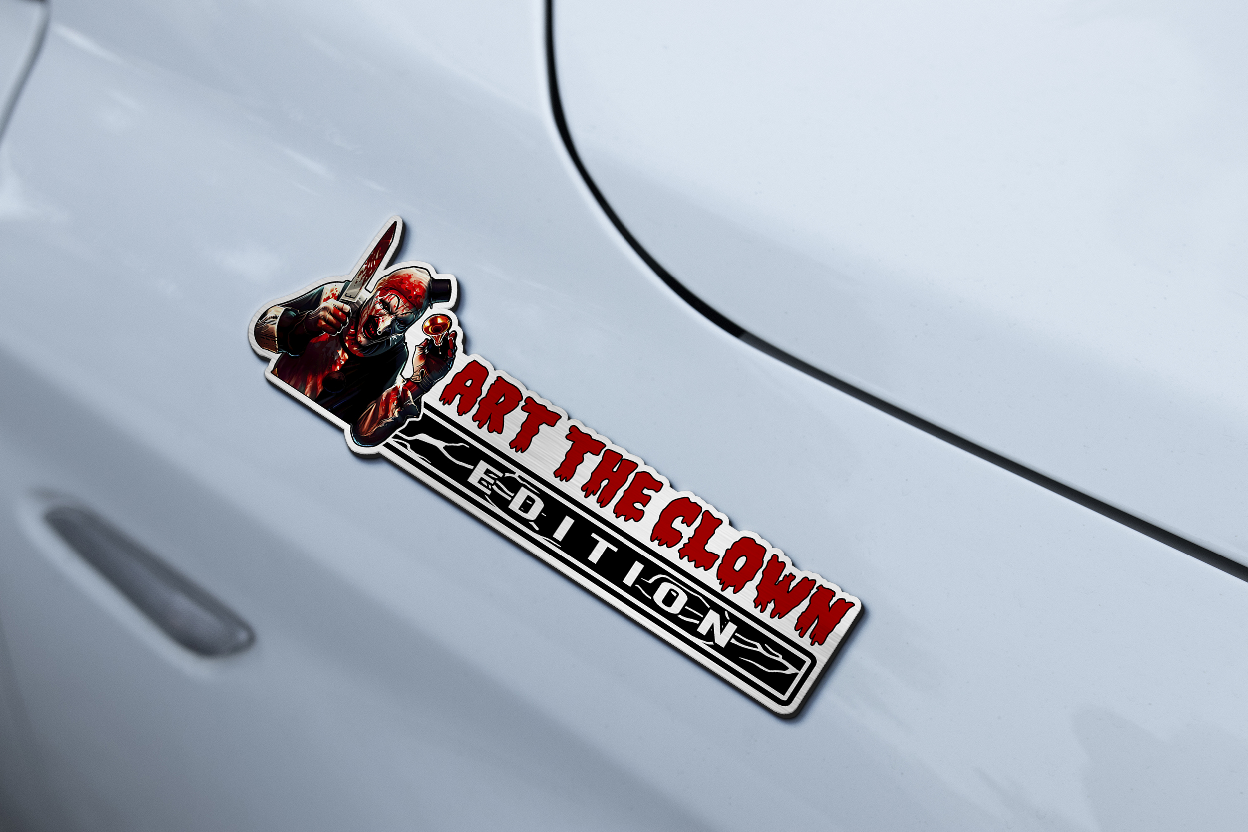 Bring the nightmare to your neighborhood—order your Terrifier emblem today and drive with deranged style!