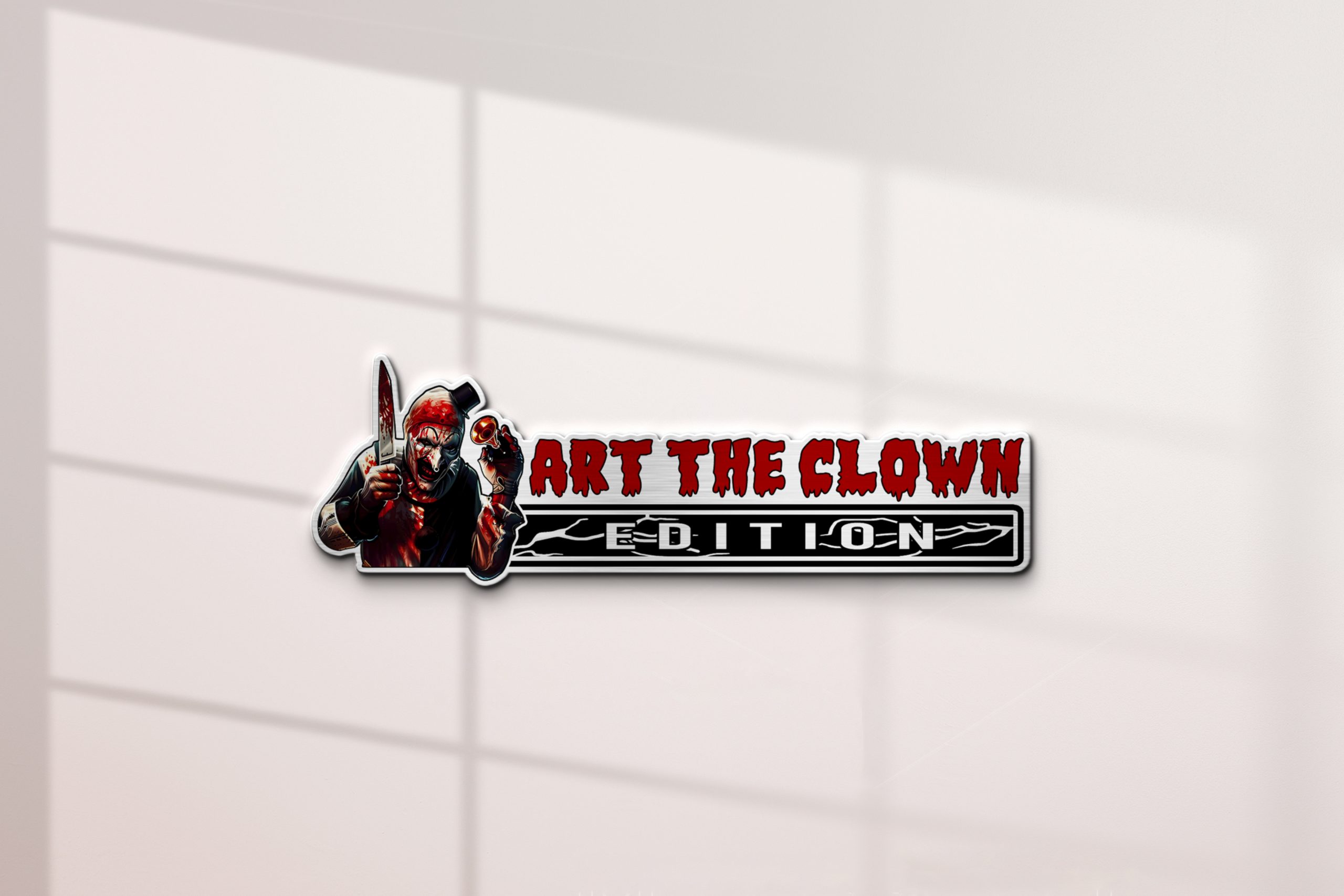 Art the Clown Edition Acrylic Car Name Emblem – Drive With Pure Terrifier Terror!