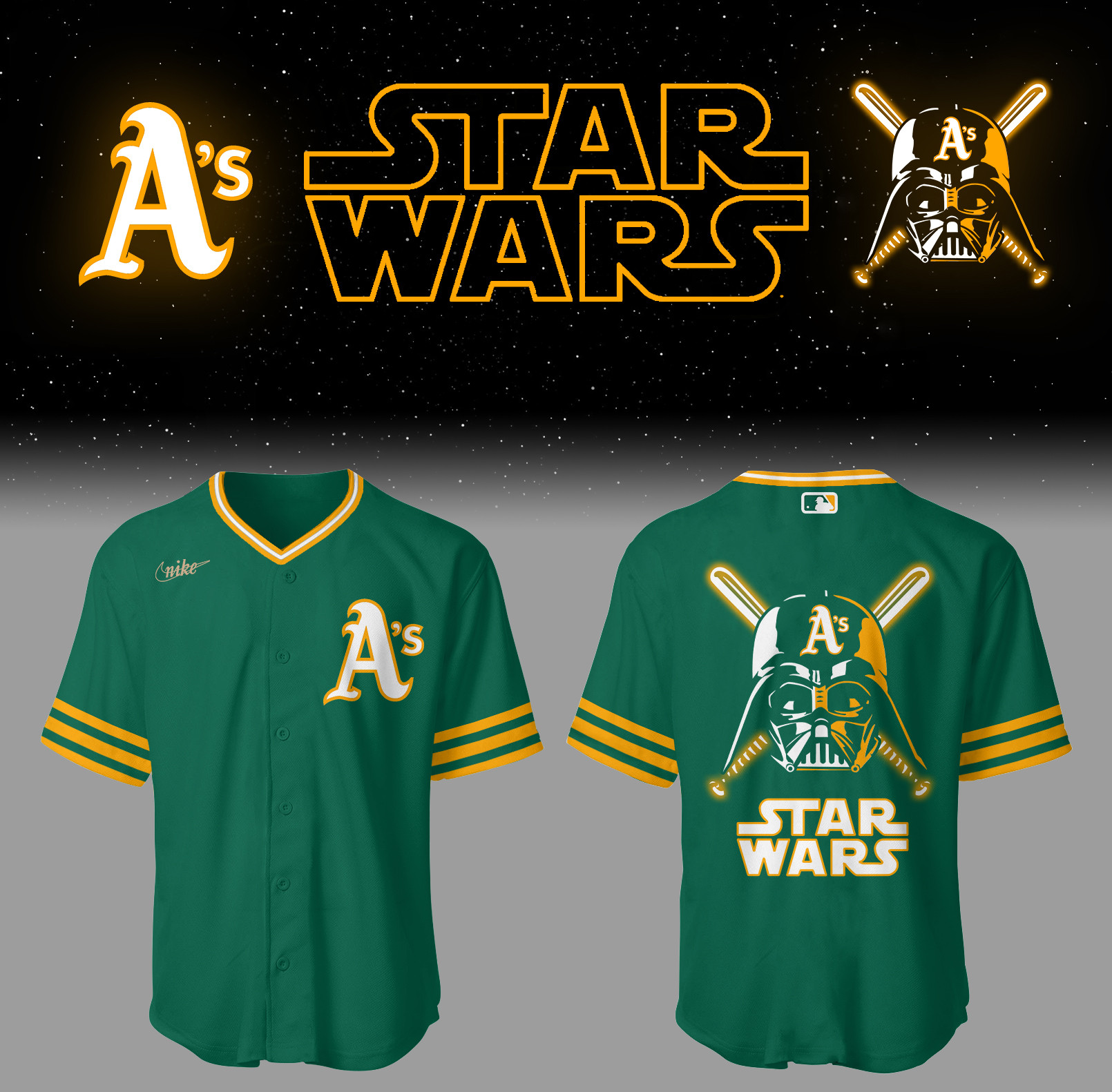 Athletics Jays Baseball 2025 Athletics x Star Wars Green Jersey Gifts For Baseball Players.