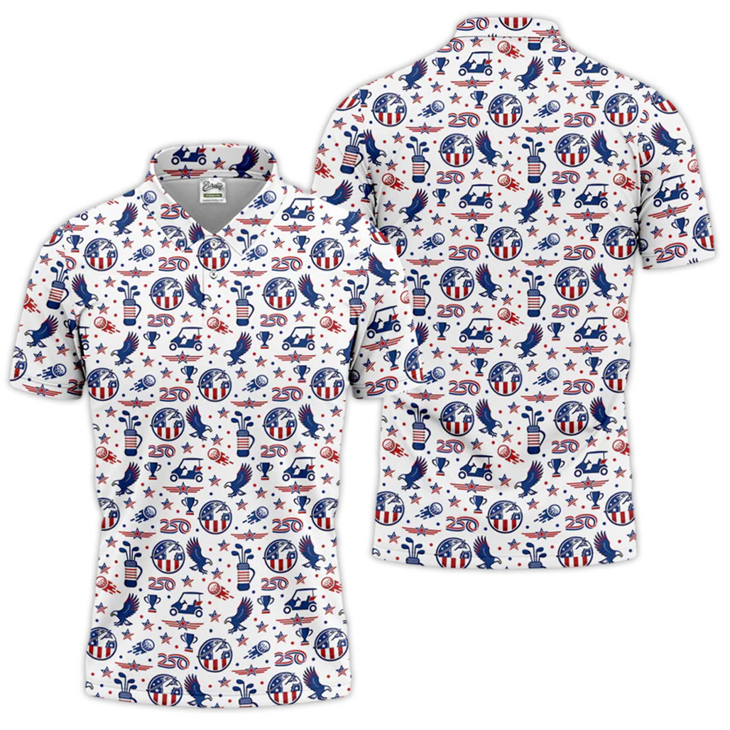 The 250th anniversary marks a historic moment celebrating the birth and evolution of the United States. This polo captures that legacy with patriotic imagery that represents freedom, courage, and national pride.
