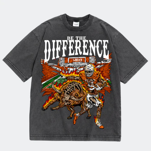Graphic: Vintage wash “Be The Difference” Texas Longhorns Football design with bold team-inspired elements.