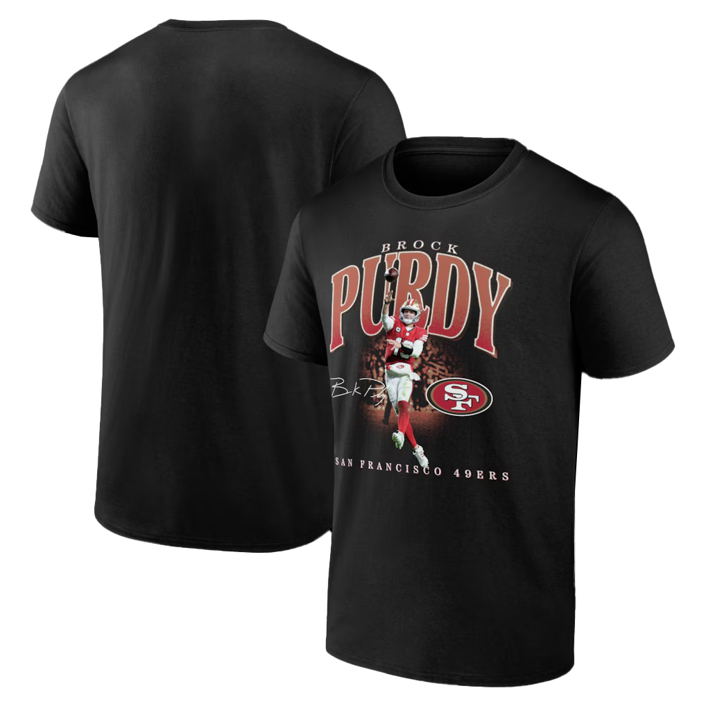 Featuring a striking graphic of Purdy and a dark, hype-driven aesthetic, this shirt captures the confidence, leadership, and playmaking ability that have made Purdy one of the most exciting quarterbacks in the league. It’s the perfect piece for fans who want to rep QB1 with pride and swagger.