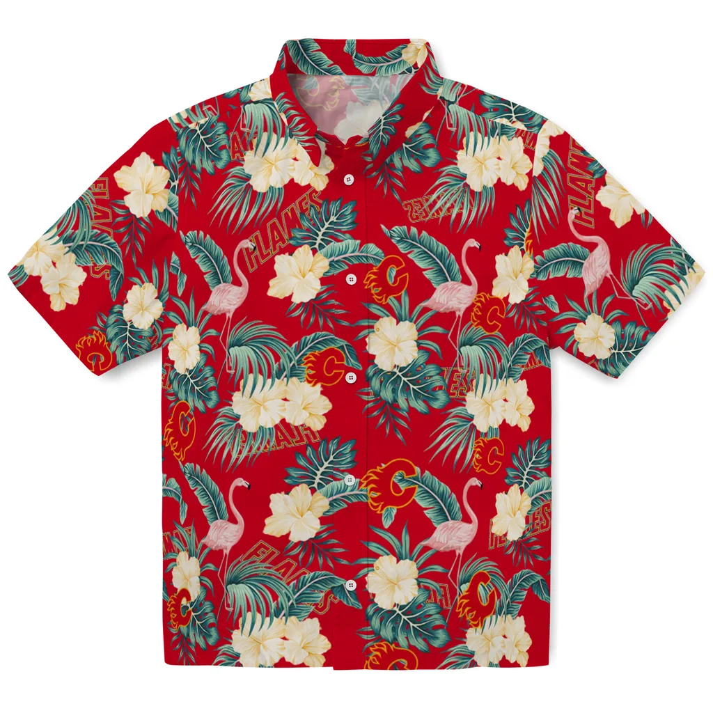 Show off tropical style and team pride with the Calgary Flames Hawaiian Shirt – Flamingo and Hibiscus. Featuring a vibrant flamingo and hibiscus floral pattern, this shirt brings a lively, fun, and energetic look perfect for fans who love both fashion and sports.