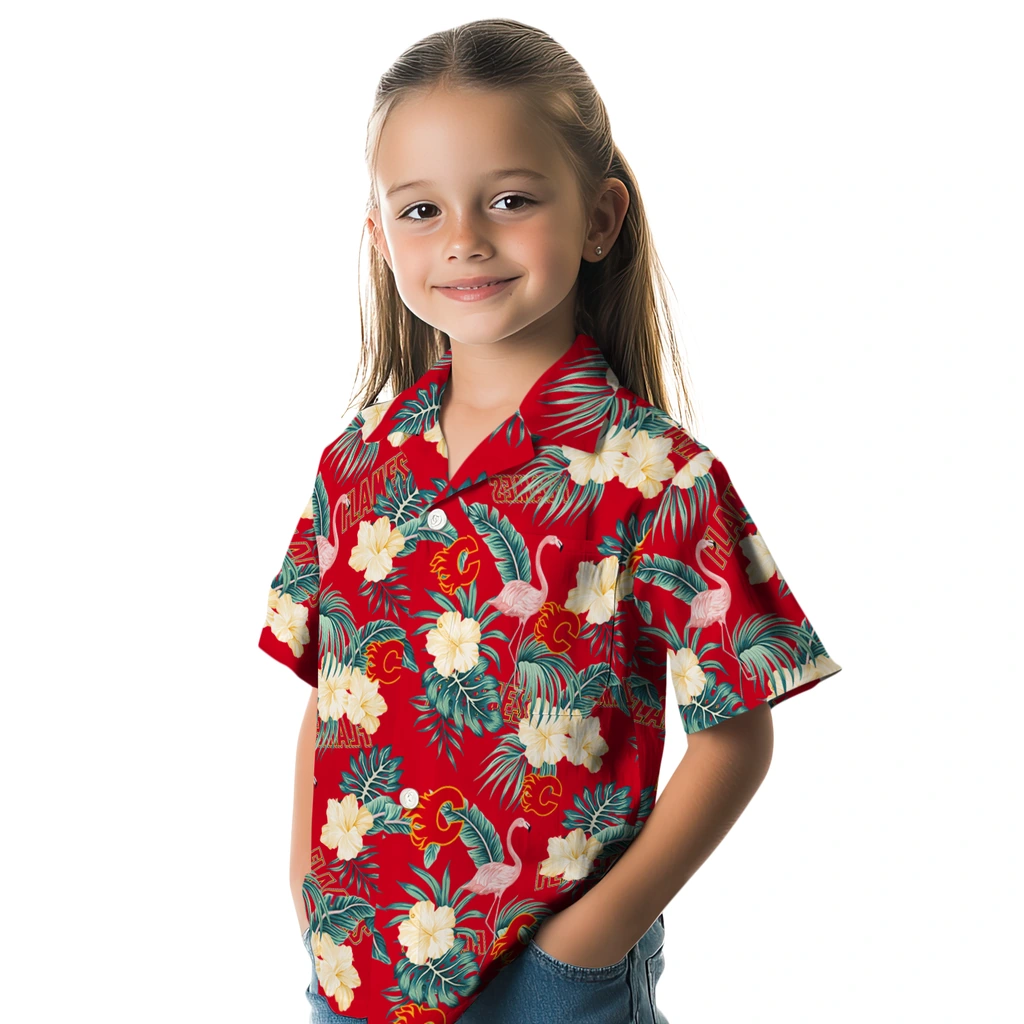 Perfect for Calgary Flames fans, combining tropical fashion with team pride.