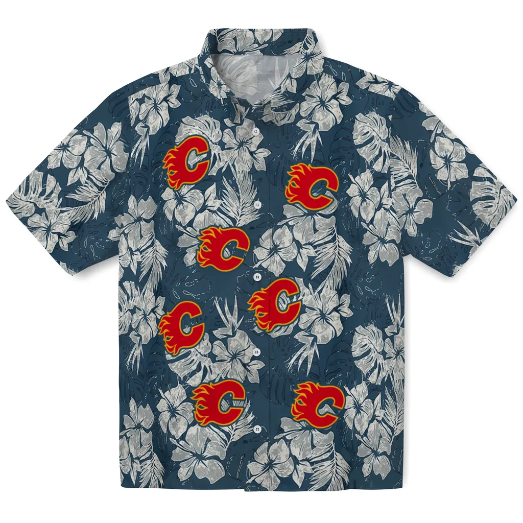 Perfect for Calgary Flames fans, combining tropical fashion with team pride.