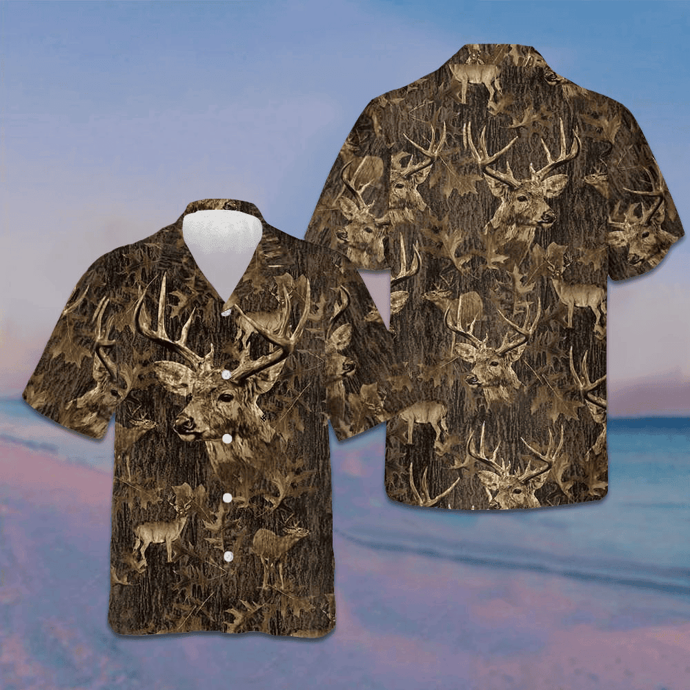 Camouflage Pattern Deer Hunting Hawaiian Shirt Men’s Button Up Gifts For Deer Hunters