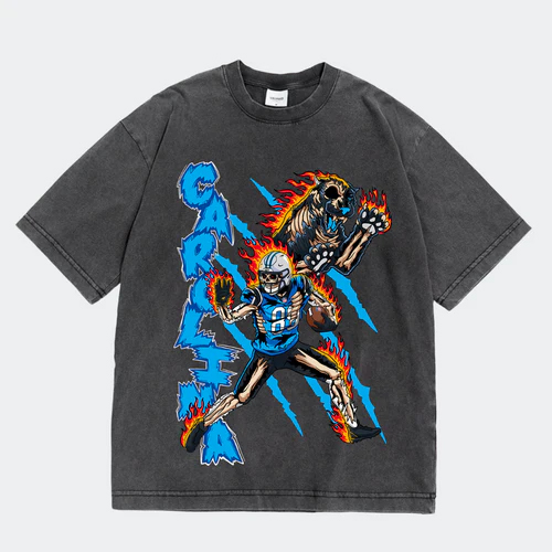 Graphic: Vintage wash Carolina Panthers Football design featuring bold team elements.