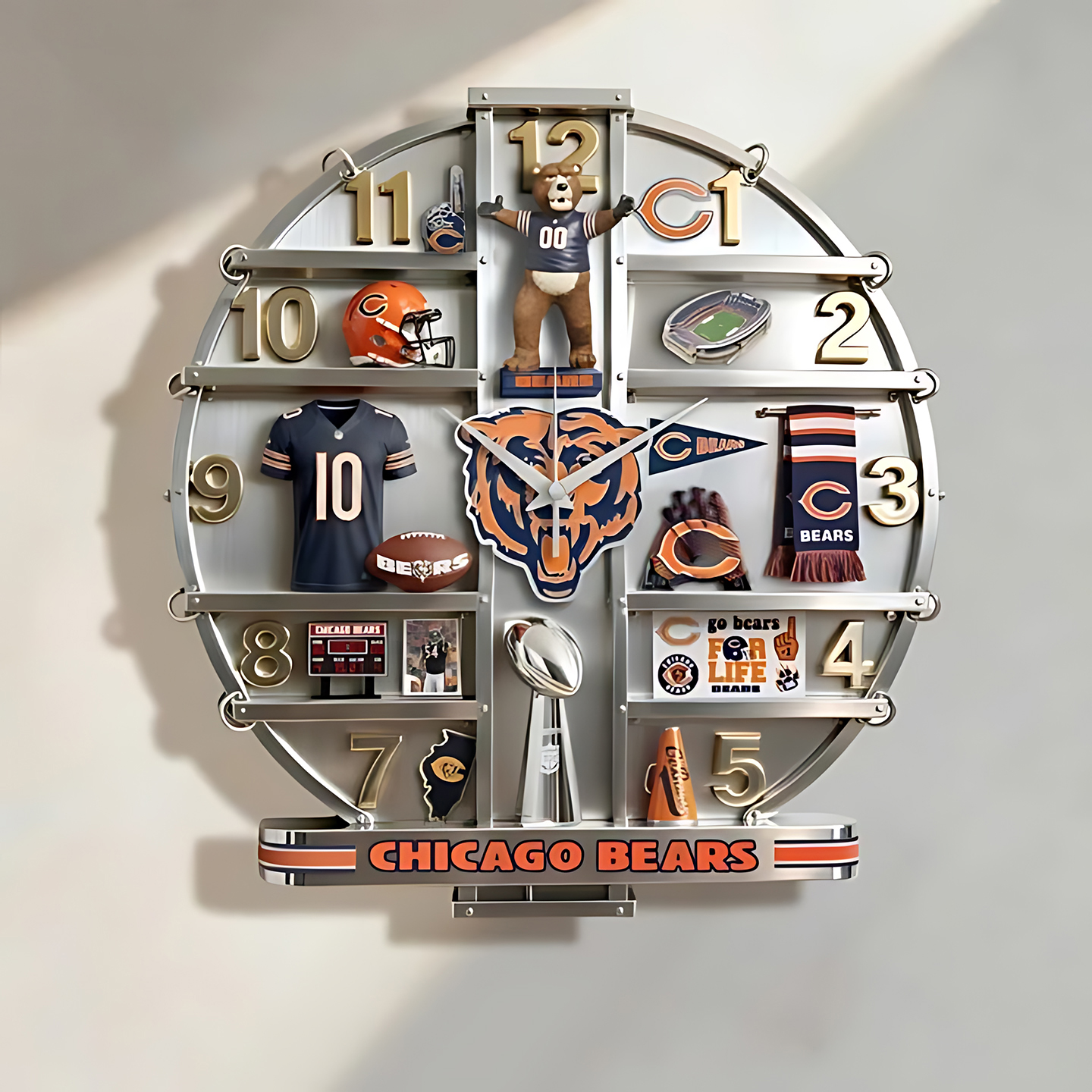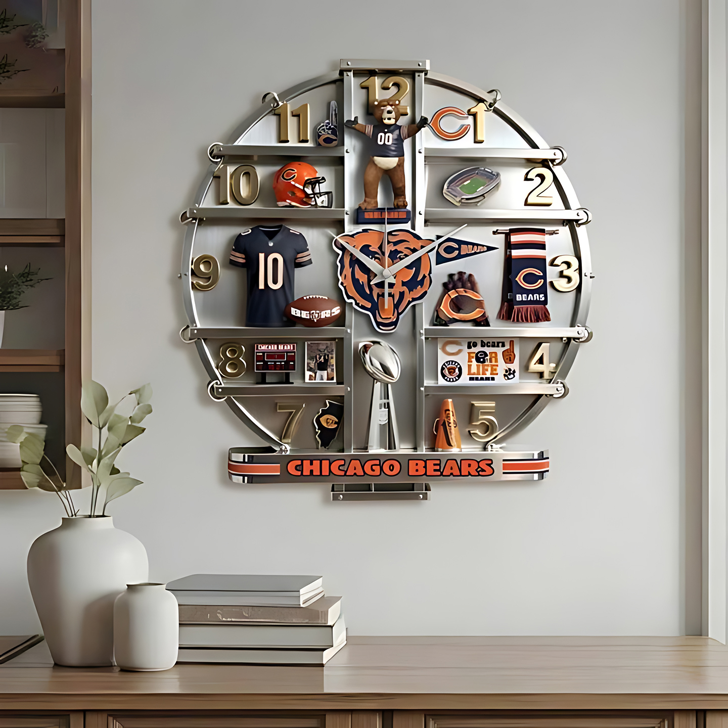 Bring bold team pride into your home with the Chicago Bears Football Home Decorative 3D Wall Clock. This stylish and functional clock is perfect for living rooms, bedrooms, offices, or game rooms, offering a striking way to showcase your Bears spirit.