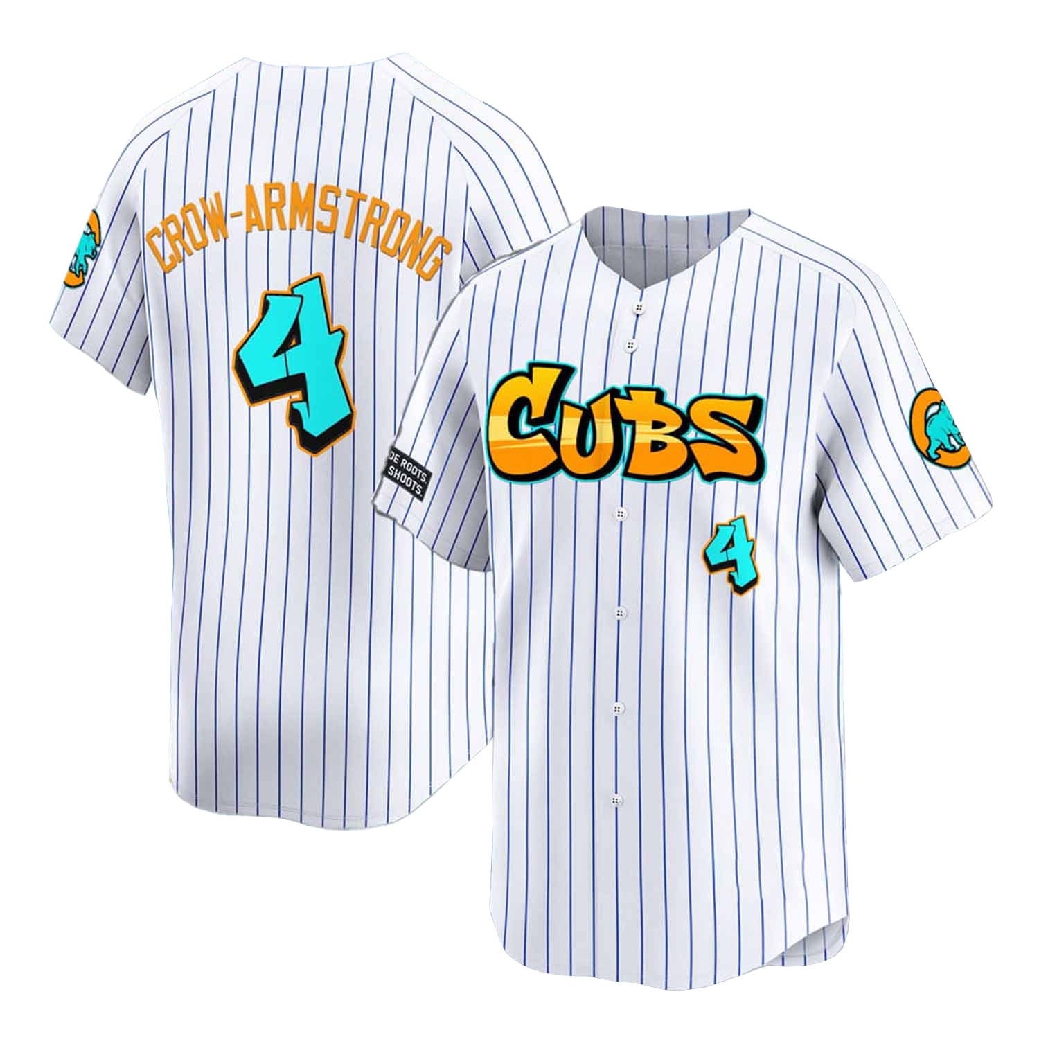Design: Button-up front with sublimated graffiti Cubs art and custom text options
