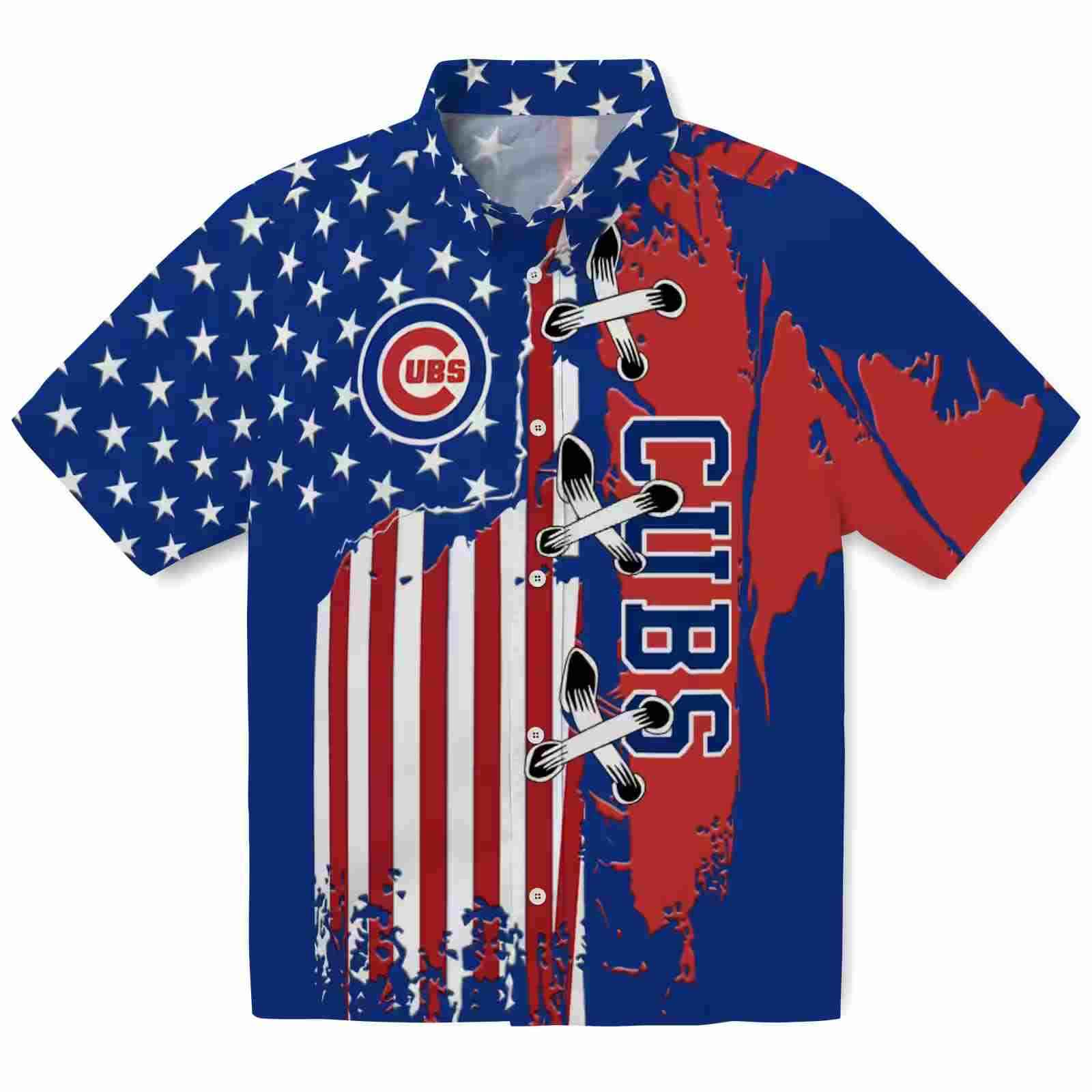 Design: All-over stitched flag pattern with subtle Chicago Cubs accents