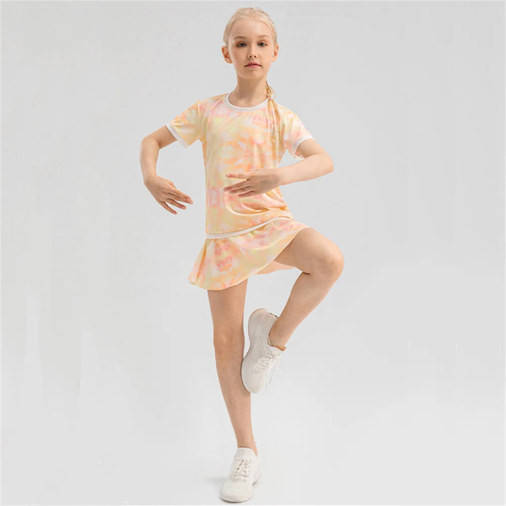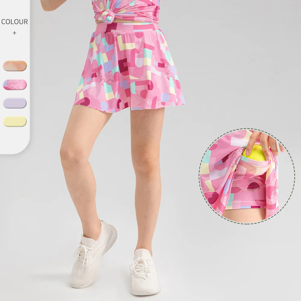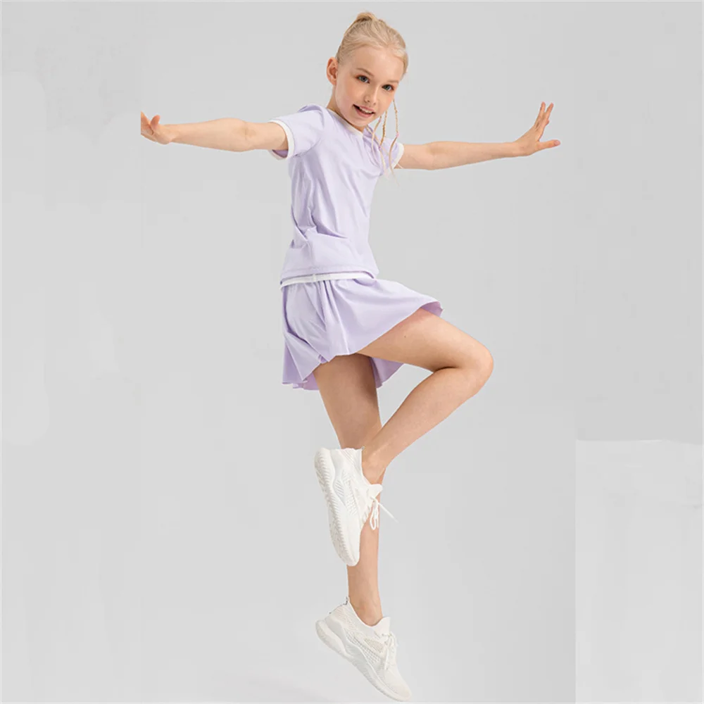 Children Golf Tennis Skirt With Shorts Girls Sport Skorts Running Dancing 2 In 1 Culottes Summer Athletic Breathable Cool Fabric