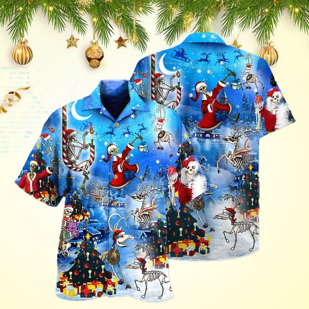 Christmas And Skull Merry Xmas Night Hawaiian Shirt Men's Hawaiian Shirts Xmas Gifts