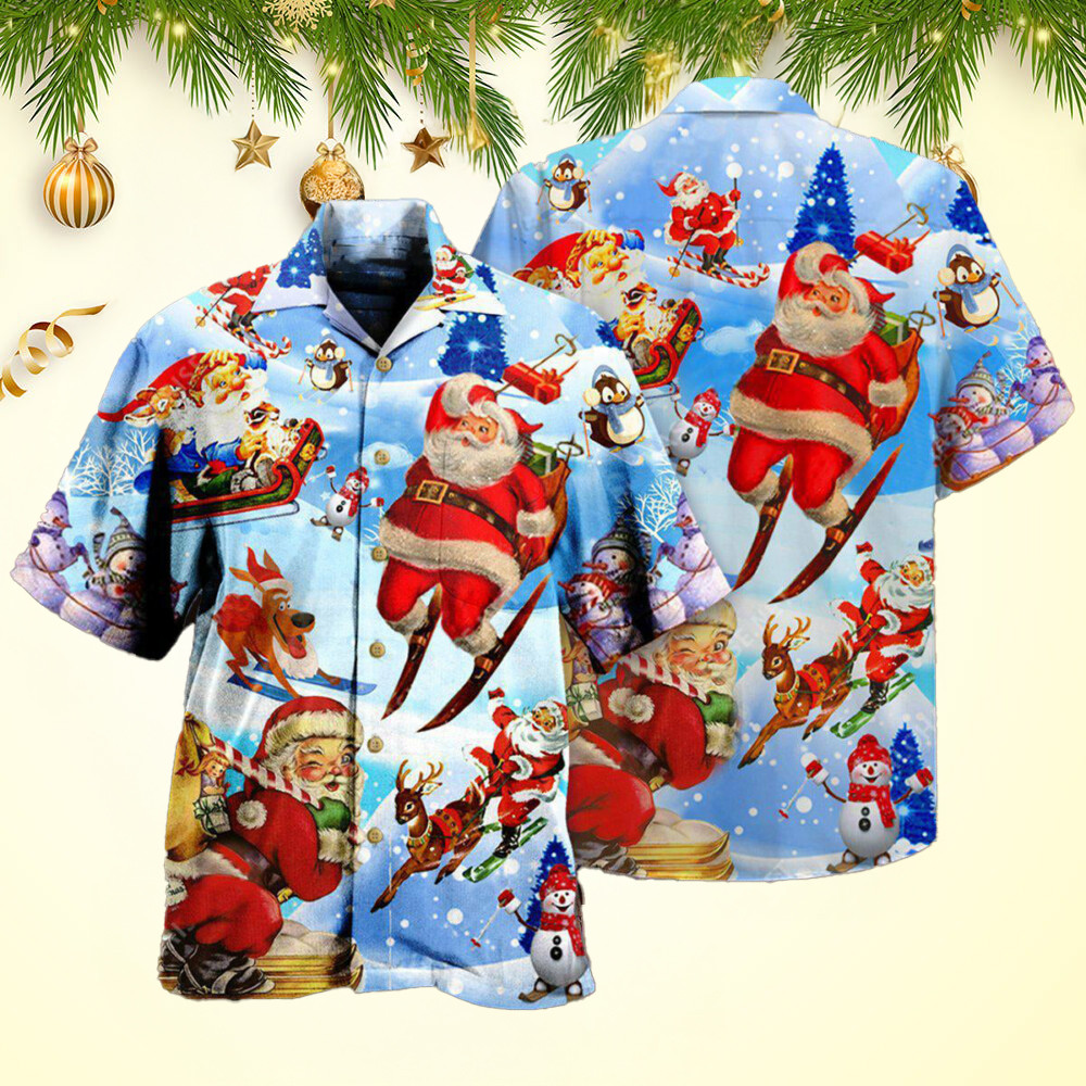 Christmas Skiing Santa Claus Hawaiian Shirt Last Minute Christmas Gifts
