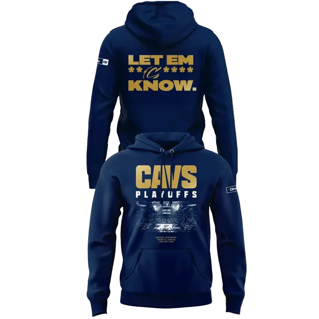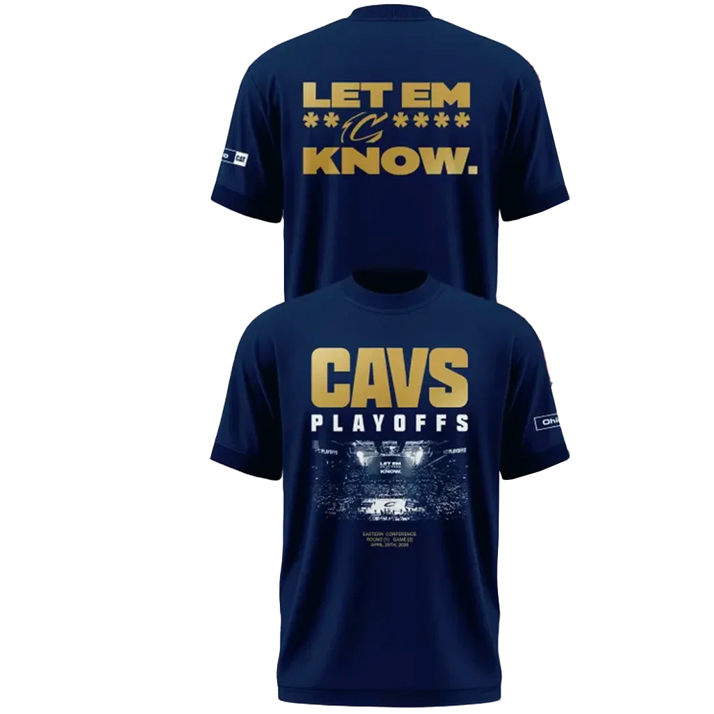 Bring the heat this postseason with the Cleveland Cavaliers Playoffs Let Em Know Navy 2026 Shirt. Featuring a bold navy base and playoff-driven attitude, this design is built for fans ready to make noise and back their team all the way.