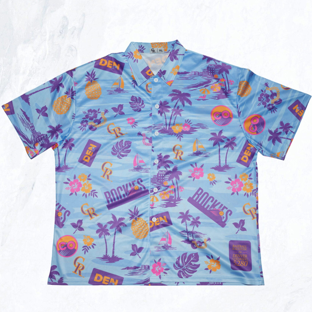 Blending tropical vibes with Rockies pride, this unique design is perfect for honoring dads who love baseball and laid-back summer fashion.