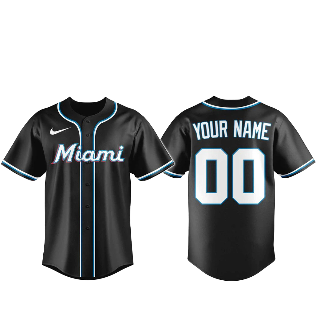 Custom Name and Number Miami Marlins Blackout Built For The Night 2026 Baseball Jersey