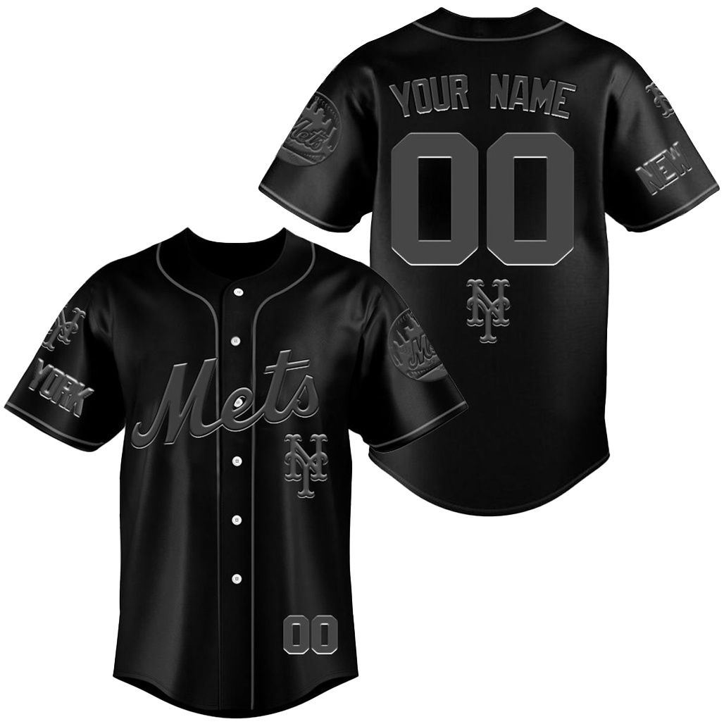 Elevate your game-day style with the Custom Name and Number New York Mets 2026 Back To The Basics All Black Baseball Jersey.