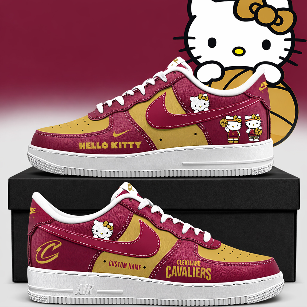 Custom Name Cleveland Cavaliers x Hello Kitty Night 2026 Air Force 1 Shoes Sneakers