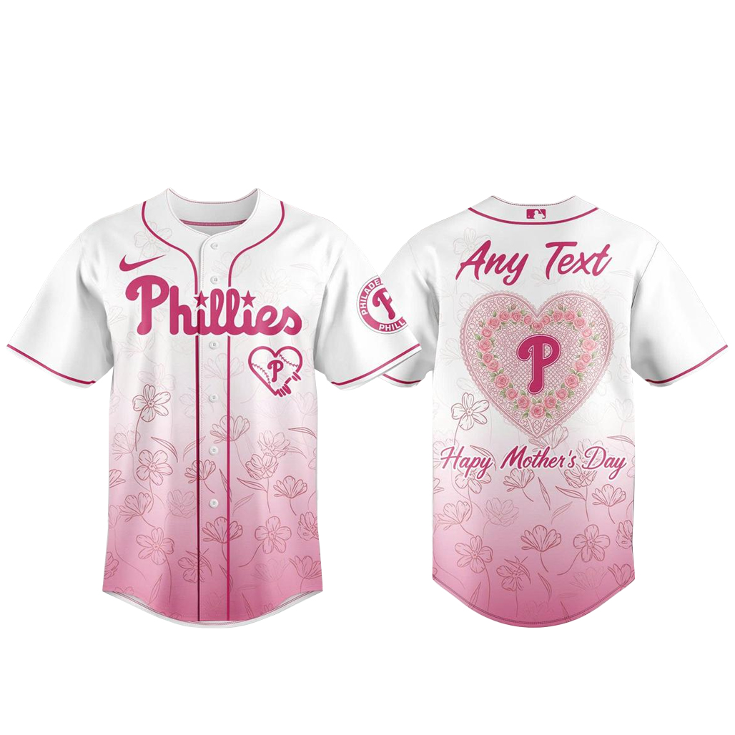 Celebrate love and team pride with the Custom Name Philadelphia Phillies Happy Mother Day 2026 Baseball Jersey. Blending Phillies spirit with a heartfelt Mother’s Day theme, this jersey offers a meaningful and stylish way to honor the special women in your life.