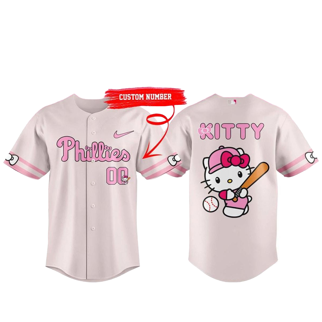 Step onto the field with a soft yet bold statement in the Custom Number Philadelphia Phillies x Hello Kitty Night 2026 Clay Pink Baseball Jersey. This unique design blends Phillies pride with Hello Kitty’s adorable charm, all wrapped in a trendy clay pink tone that stands out effortlessly.