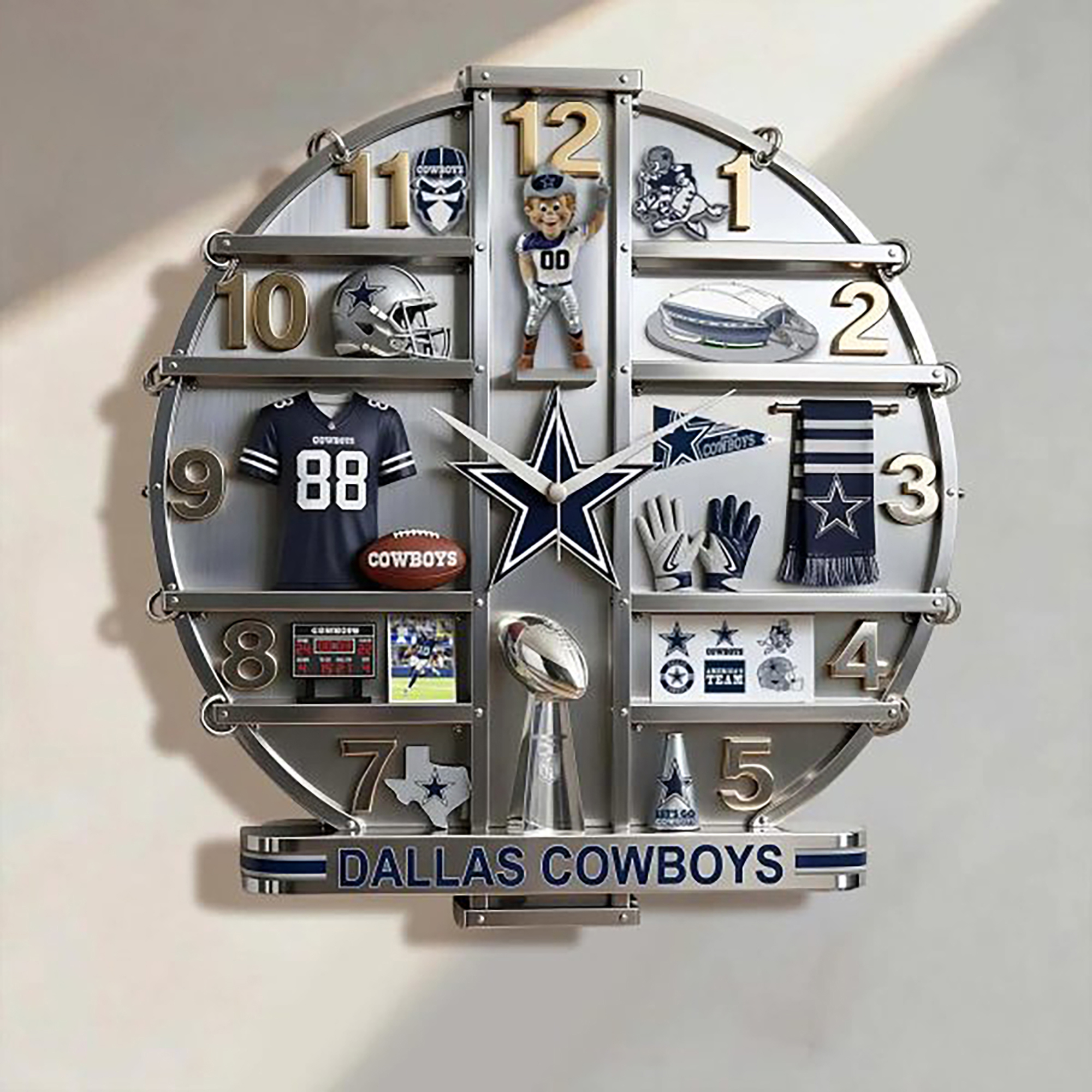 Show off your Cowboys pride with the Dallas Cowboys Home Decorative 3D Wall Clock. This eye-catching and functional clock is a perfect addition to living rooms, bedrooms, offices, or game rooms, giving any space a bold team-inspired upgrade.