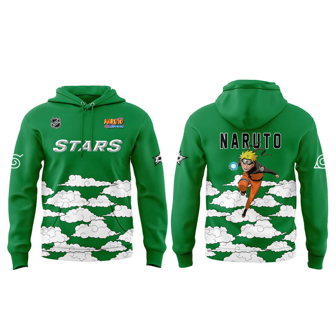 Featuring a standout front graphic that fuses Dallas Stars imagery with iconic Naruto elements, this shirt channels the drive and teamwork of both elite athletes and shinobi warriors — perfect for fans of both worlds.
