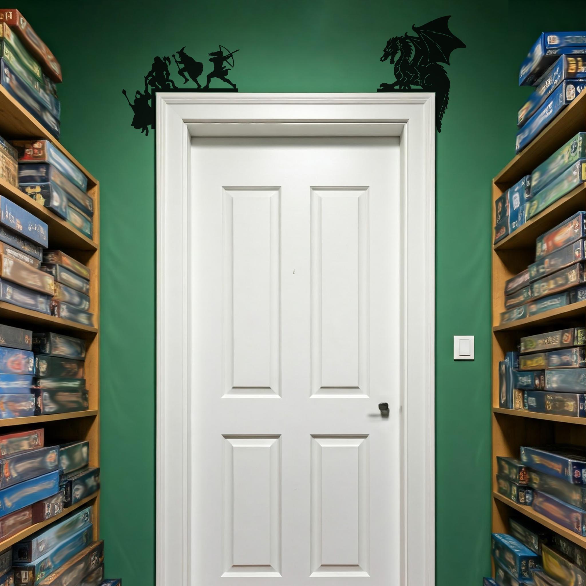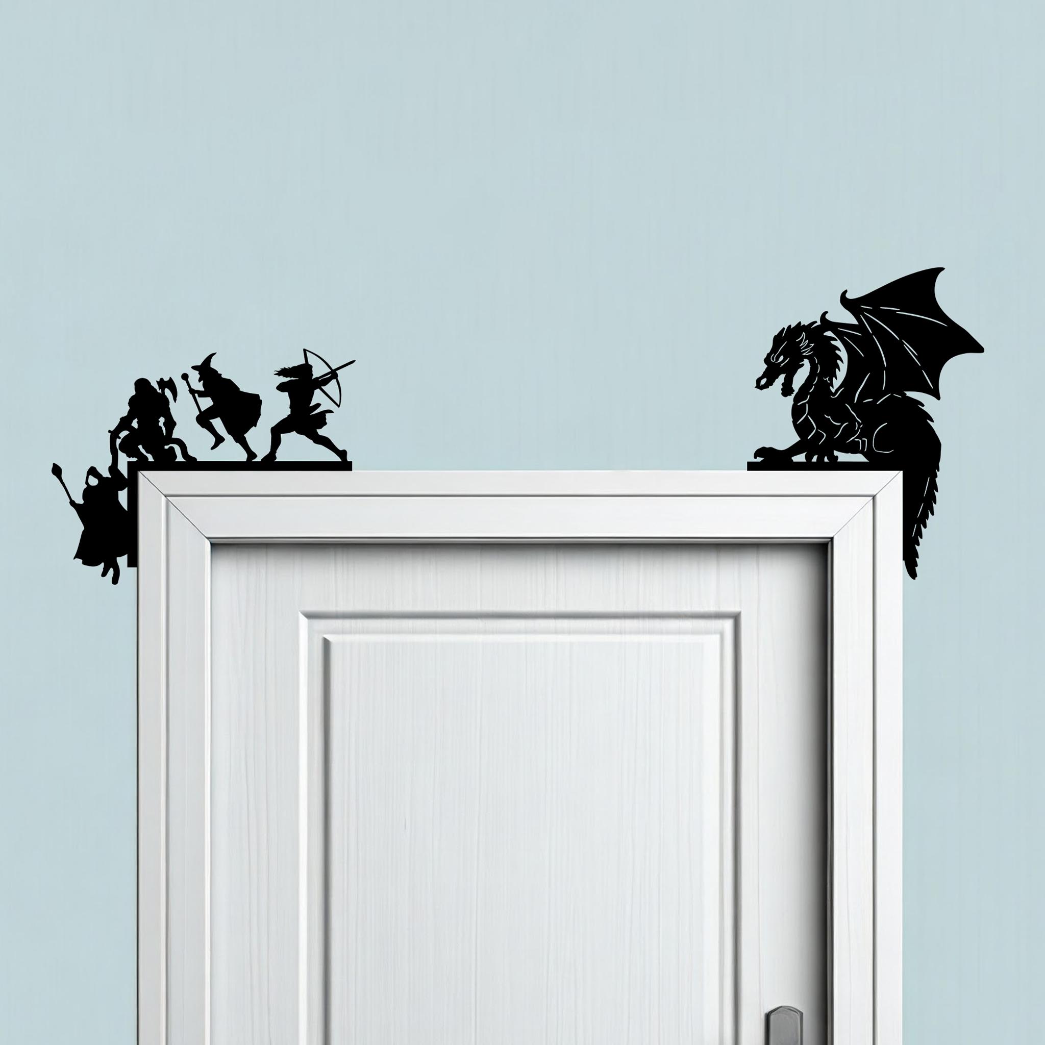 🐲 Bring your love for tabletop role-playing games and fantasy realms to life with this DND Decor Door Corner Set! Featuring a dramatic two-piece design, this black wood decor transforms any doorframe into an adventurous scene straight from your favorite campaign.