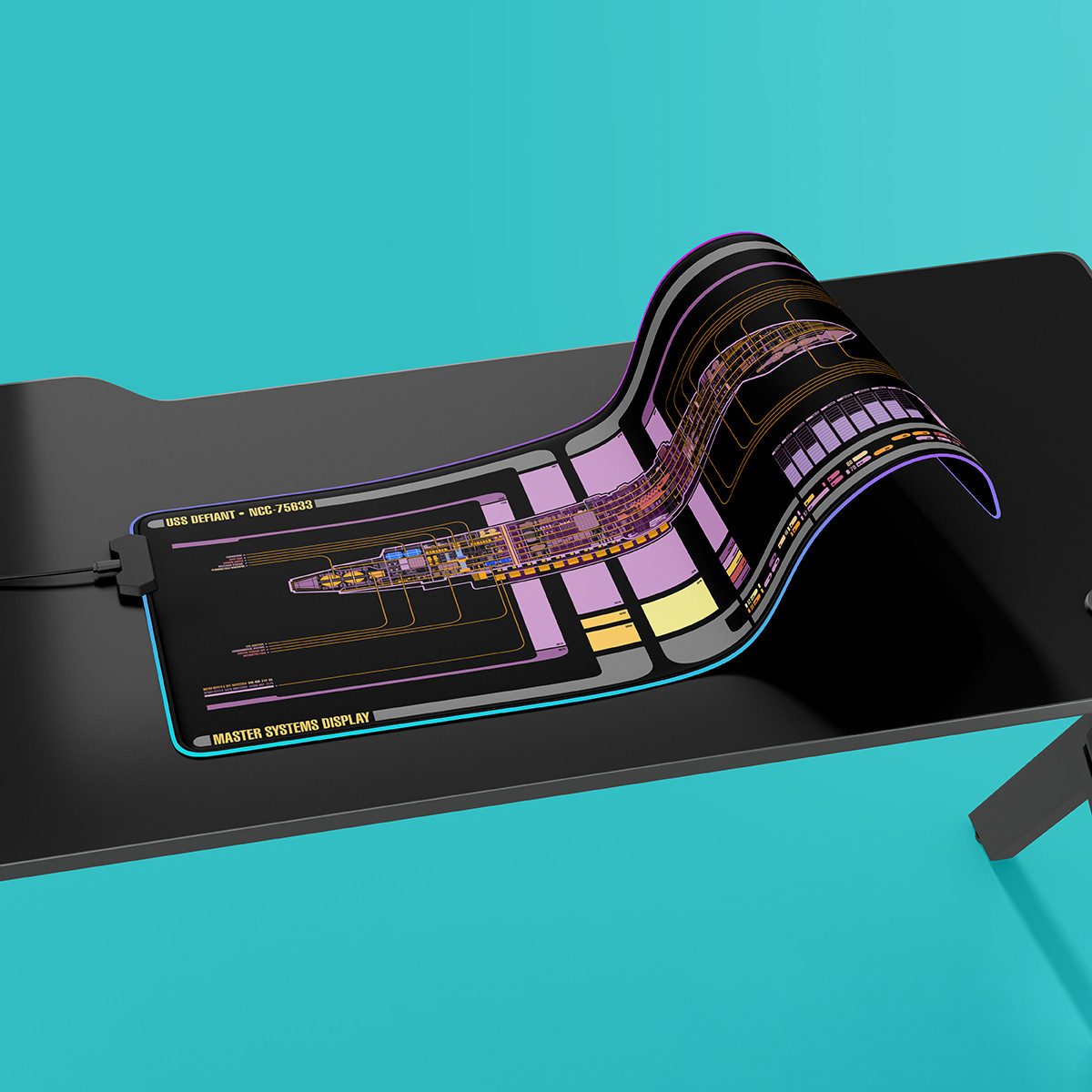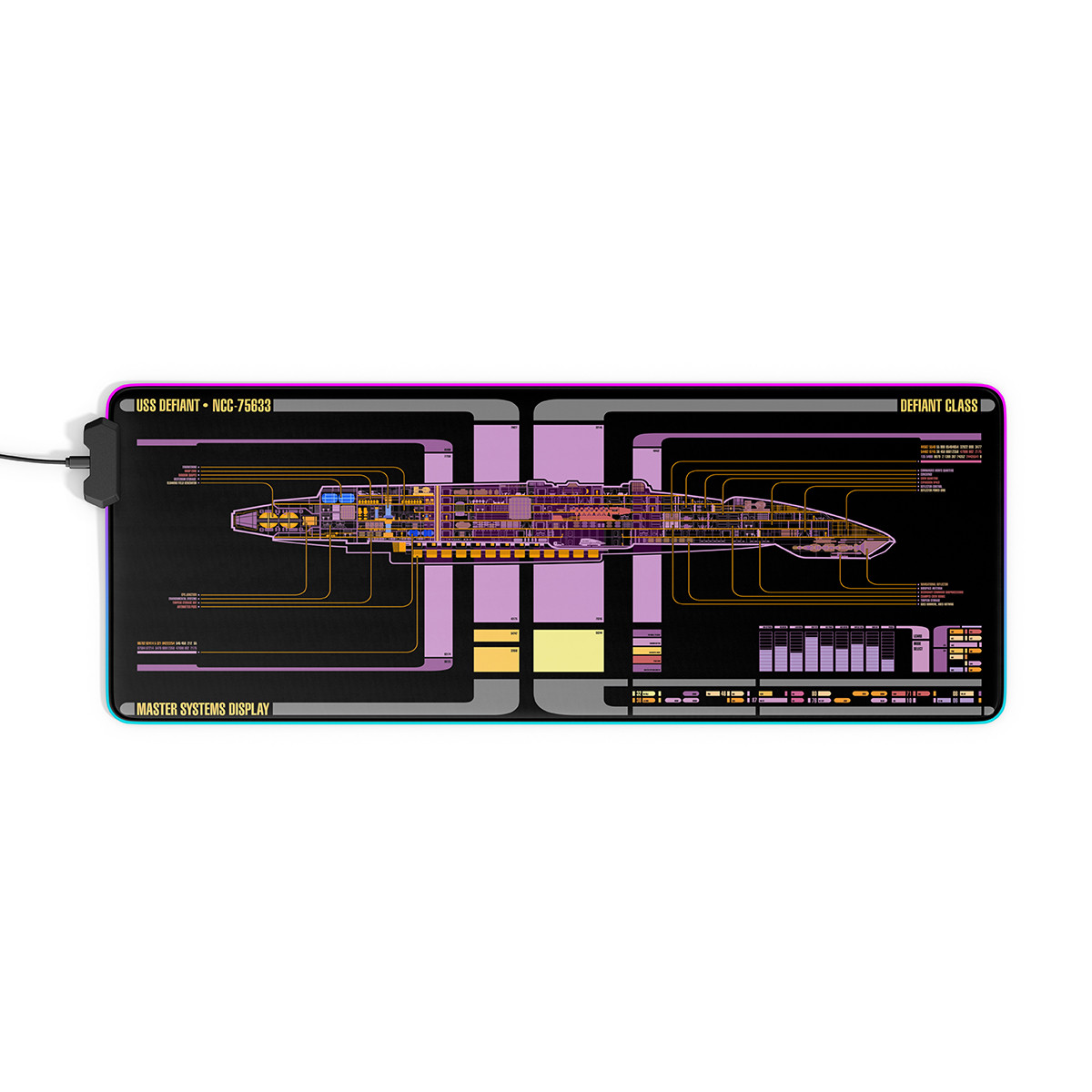Defiant Class - USS Defiant NCC-75633 LCARS Schematic LED Desk Mat
