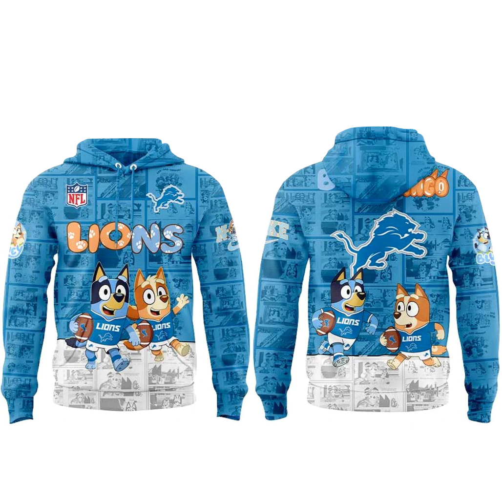 Bring fun and team spirit together with the Detroit Lions x Bluey and Bingo Shirt. This playful design blends Lions pride with the lovable characters Bluey and Bingo, creating a cheerful and eye-catching look for fans of all ages.