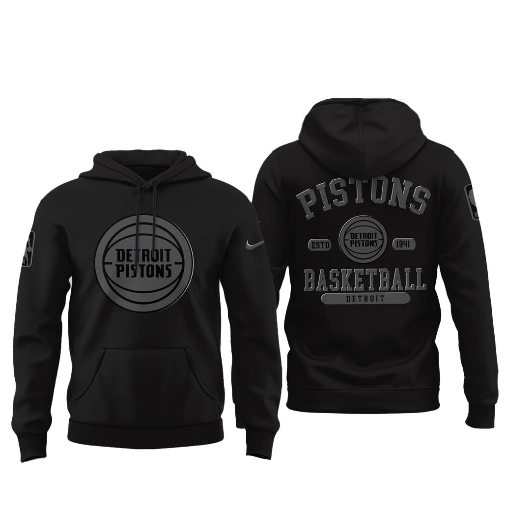 The sleek black design creates a strong and modern basketball look that Pistons fans can wear anywhere.