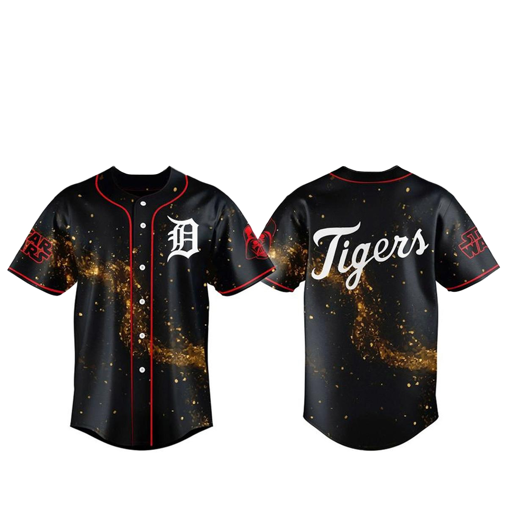 Step into a galaxy of champions with the Detroit Tigers x Star Wars Night 2026 Golden Galaxy Baseball Jersey. This bold design combines Tigers pride with a stunning golden galaxy theme, bringing interstellar energy to your game-day style.