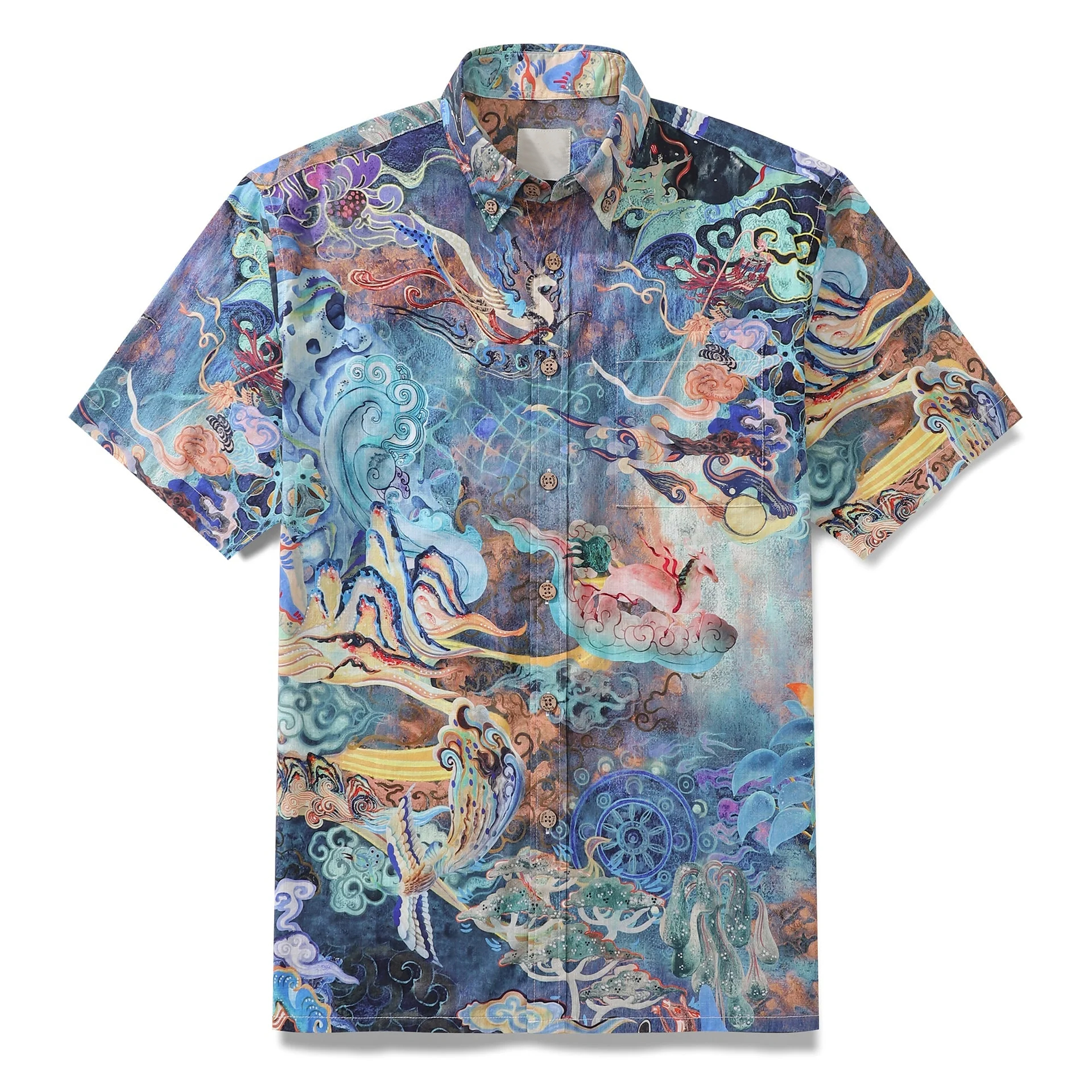 This Hawaiian shirt features a high-quality printed design inspired by dreamlike landscapes and flowing forms. The artwork feels soft, imaginative, and immersive, giving the shirt a unique visual depth that stands out without being overwhelming.