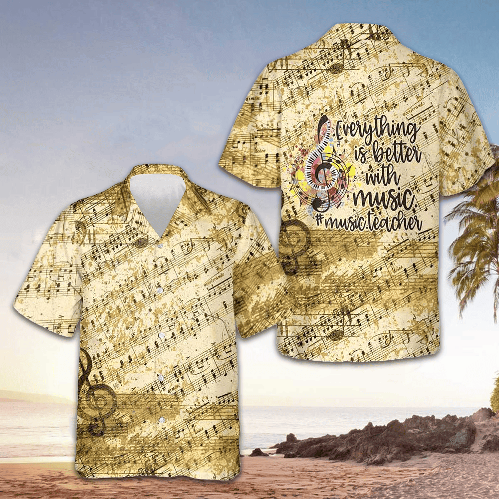 Everything Is Better With Music Hawaiian Shirt Old Vintage Music Teacher Shirt Gifts For Men