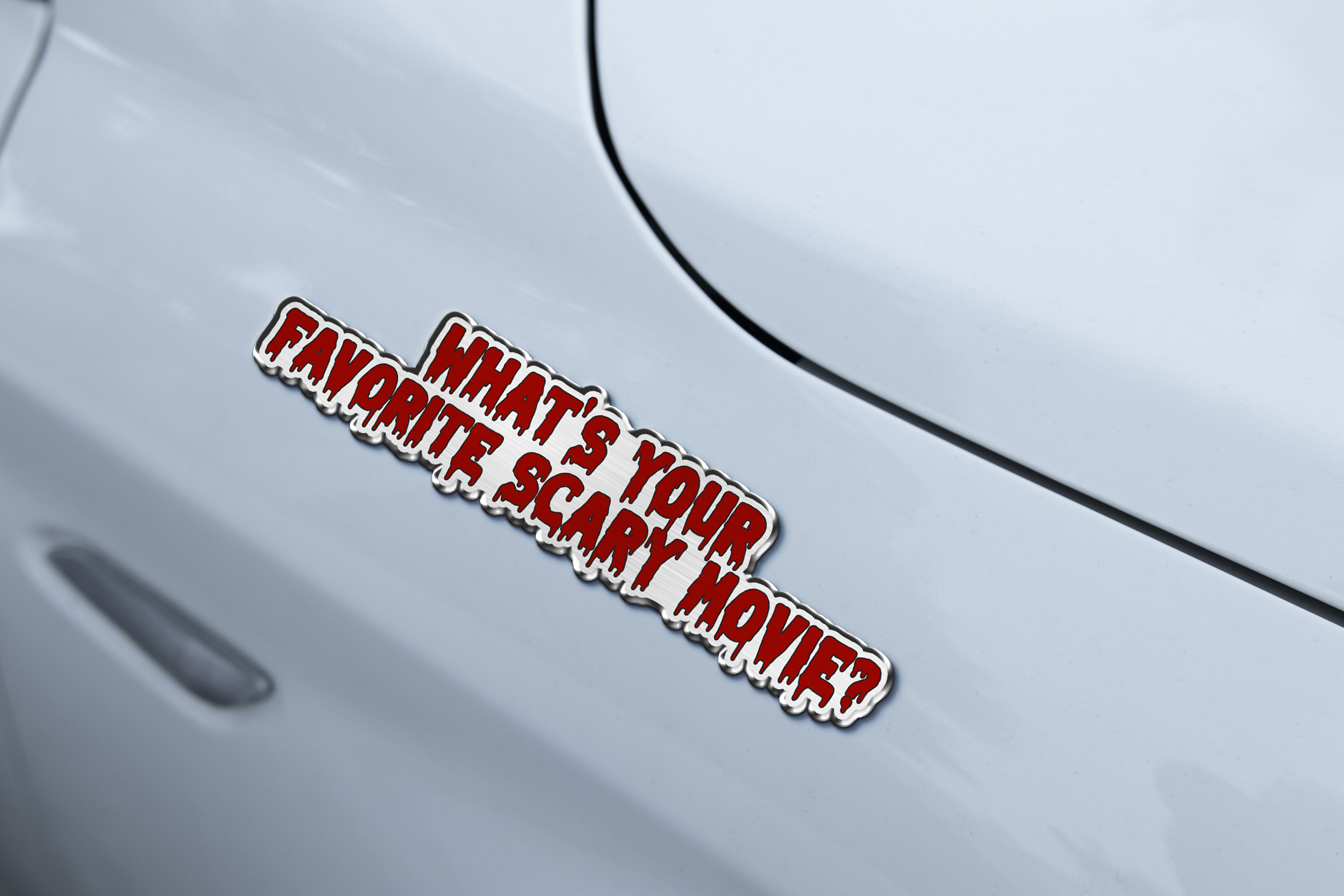 Ghostface Iconic Quote Edition Laser Engraved Car Emblem – Drive With a Killer Question… “What’s Your Favorite Scary Car?” 🔪📞🚗