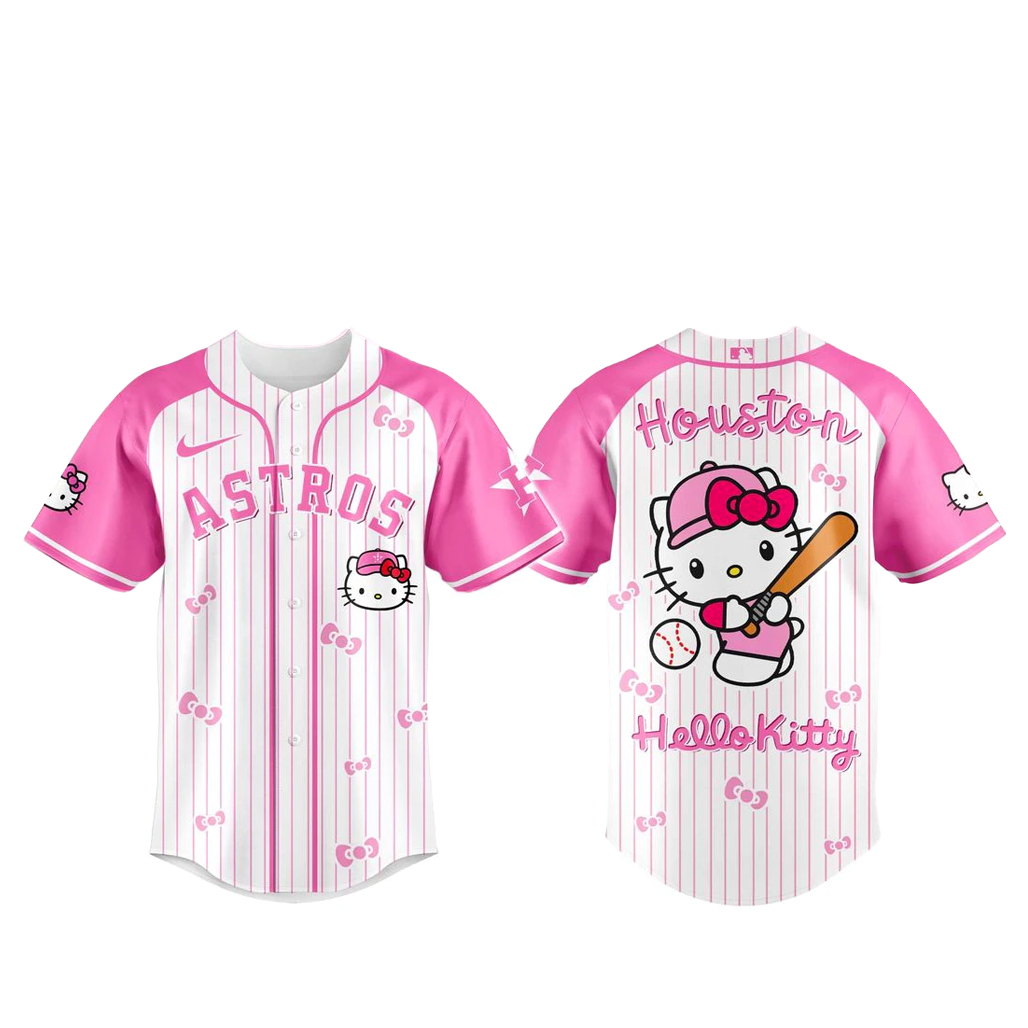Bring together baseball pride and adorable style with the Houston Astros x Hello Kitty 2026 Pink Baseball Jersey. This fun crossover combines the iconic MLB franchise Houston Astros with the beloved character Hello Kitty created by Sanrio, delivering a playful and stylish jersey perfect for fans who love sports and pop culture.