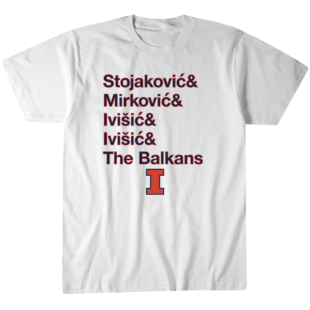 Celebrate unique team chemistry with the Illinois Basketball The Balkan Bloc T-Shirt, highlighting a distinctive identity built on skill, unity, and international flair. This tee captures the pride and personality behind the team’s standout style.