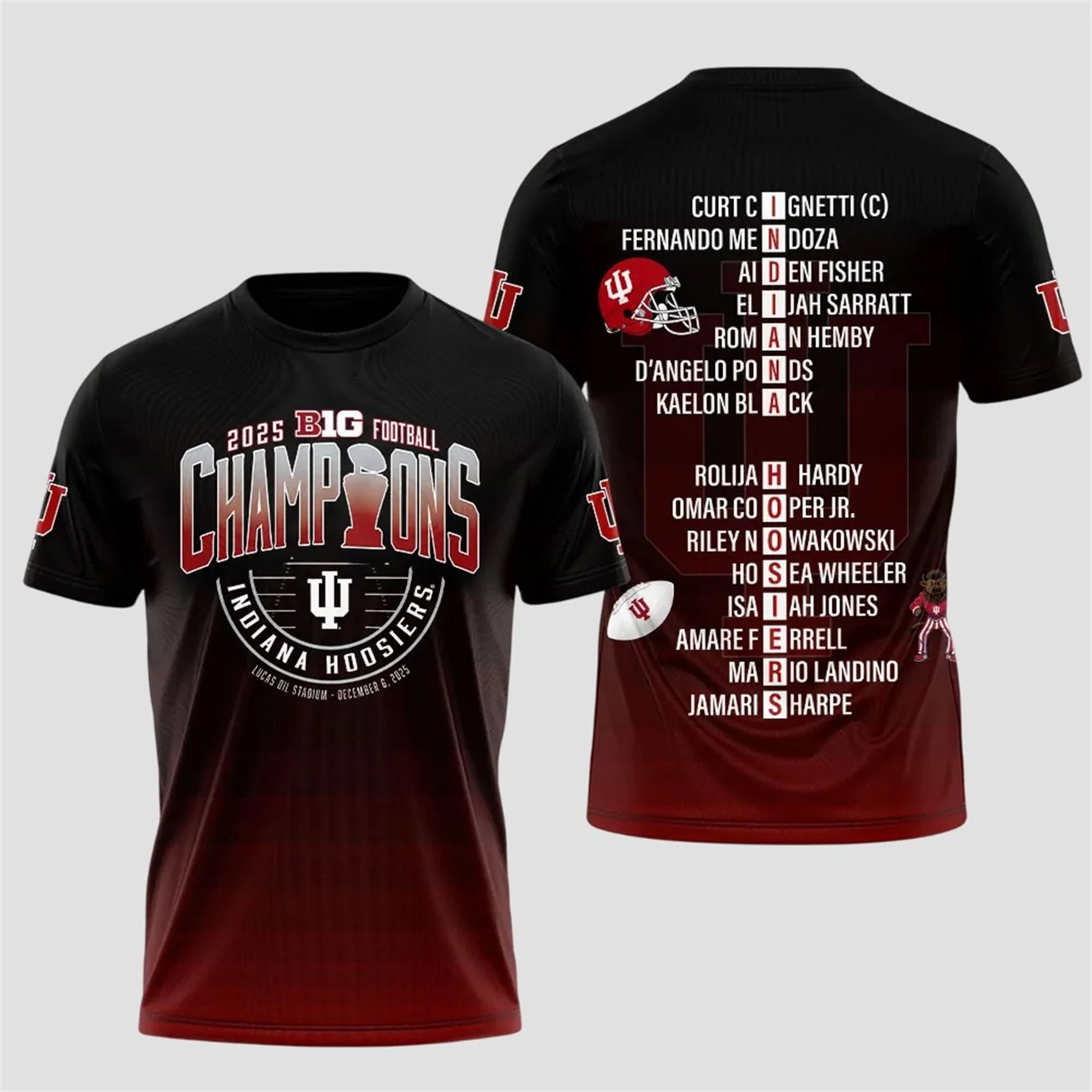 This shirt is a tribute to the Hoosiers’ incredible journey to the top, capturing every moment of their hard-fought season. Featuring a bold graphic commemorating their 2025 Big Football Championship, it’s designed for fans who cheer for excellence and celebrate a team that pushed through every obstacle to claim the title.