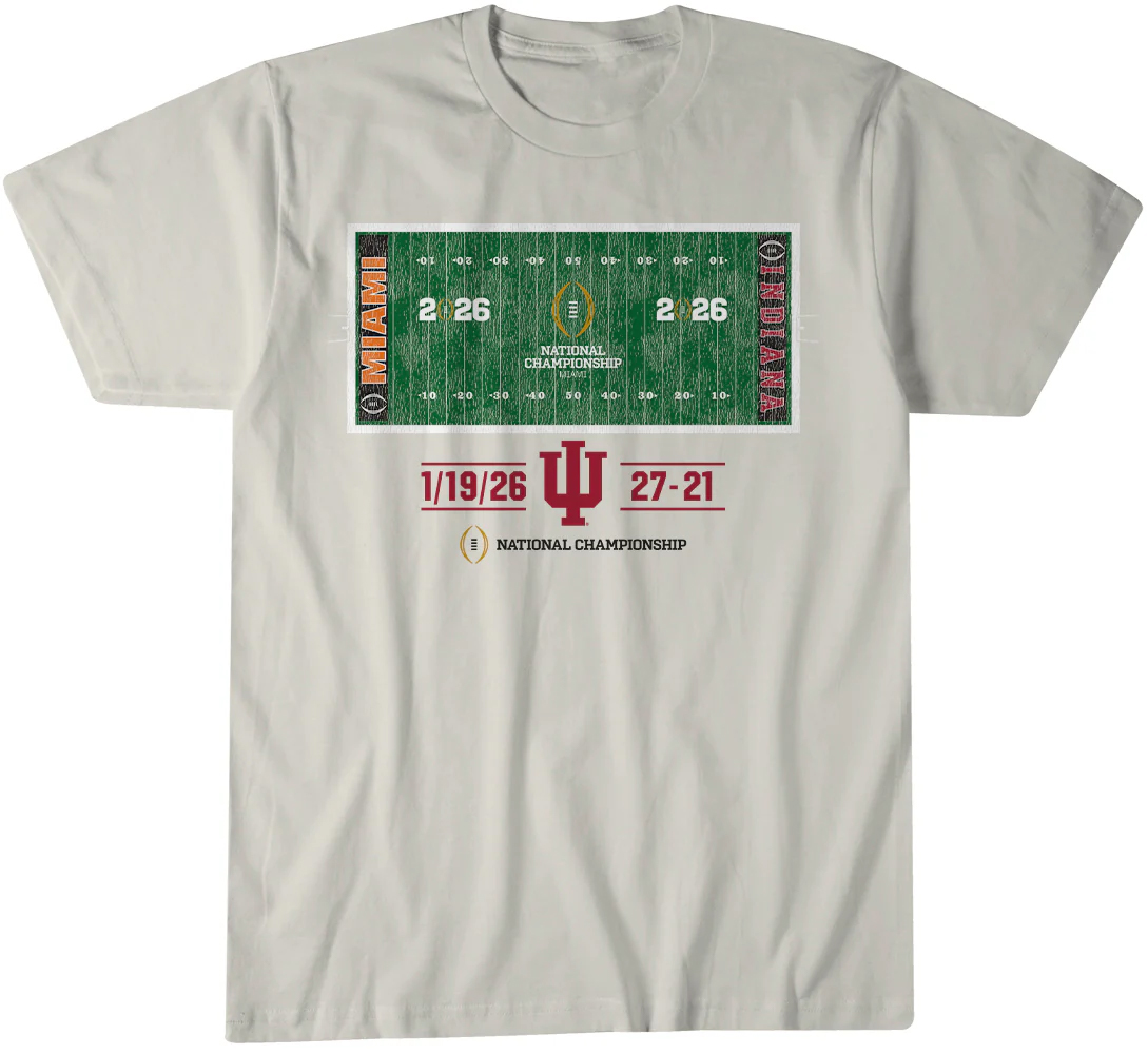 Featuring a striking “CFP National Champions” field-themed graphic with classic Cream & Crimson styling, this shirt pays homage to the exact place where history was made. Every yard gained, every crowd-roaring play, and every moment of Indiana’s championship performance is reflected in this design. Whether you’re celebrating on campus, at Memorial Stadium, or showing off IU pride anywhere across the country, this tee makes your championship spirit impossible to miss.