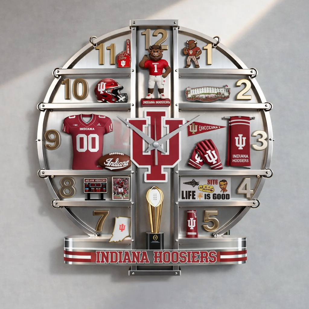 Bring Indiana pride into any room with the Indiana Hoosiers Home Decorative 3D Wall Clock. This stylish and functional clock is the perfect addition to living rooms, bedrooms, offices, or game rooms, adding a bold touch of team spirit wherever it’s displayed.