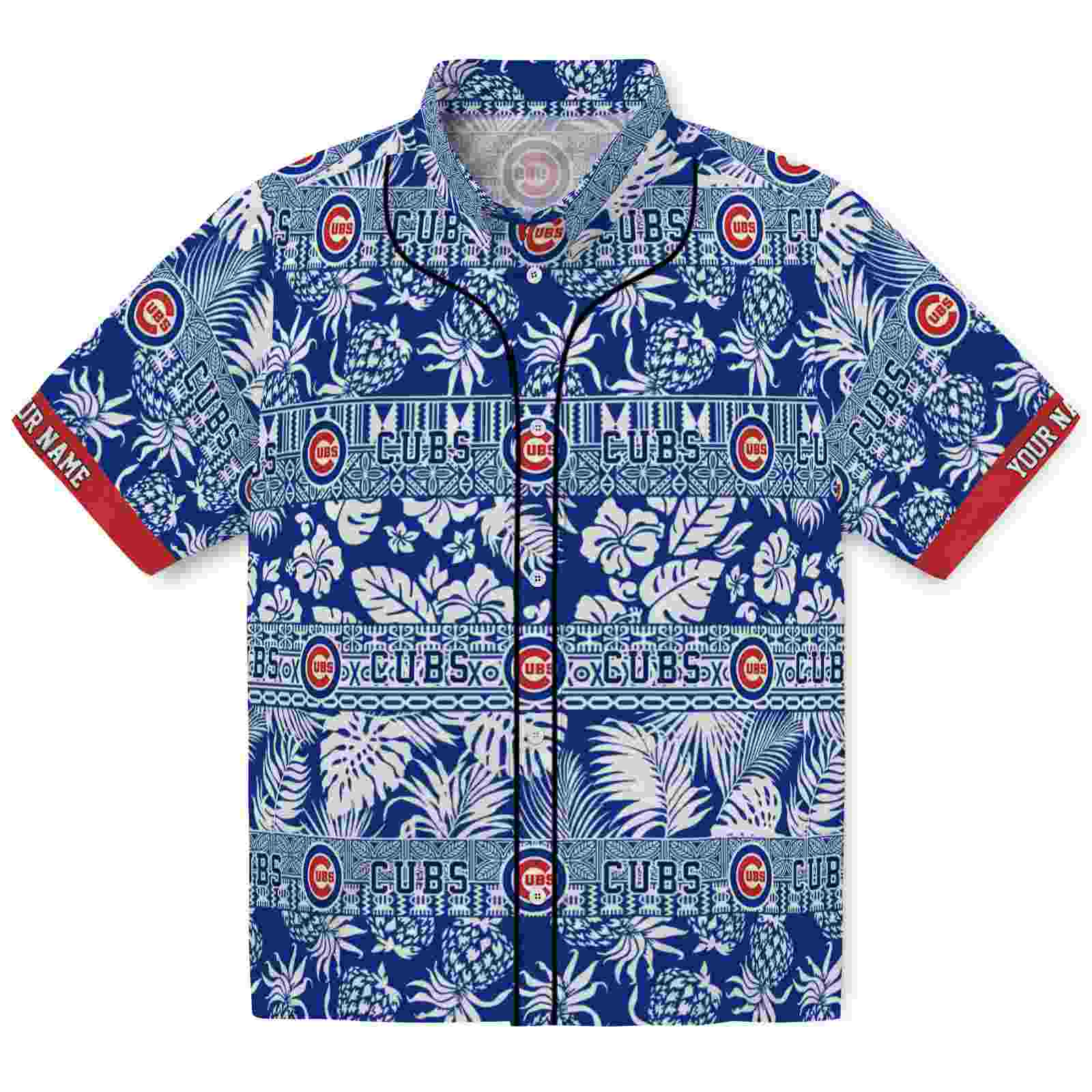 ized Chicago Cubs Tribal Stripes Blue White Aloha Hawaiian Shirt