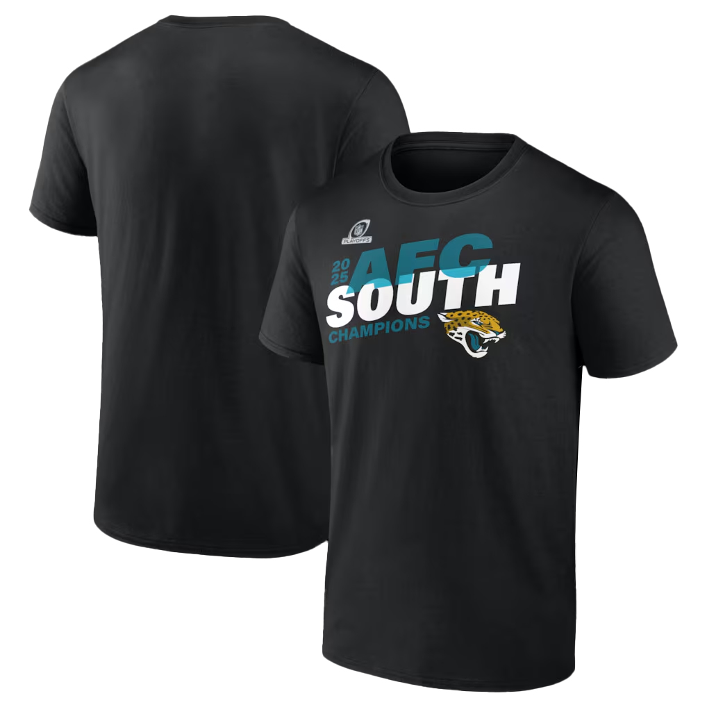 Rep Jacksonville with a design that captures the excitement of their 2025 AFC South Division win. This shirt is a tribute to their dominant performance and marks a new chapter in the team’s legacy. Show the world that the Jaguars are here to stay at the top!
